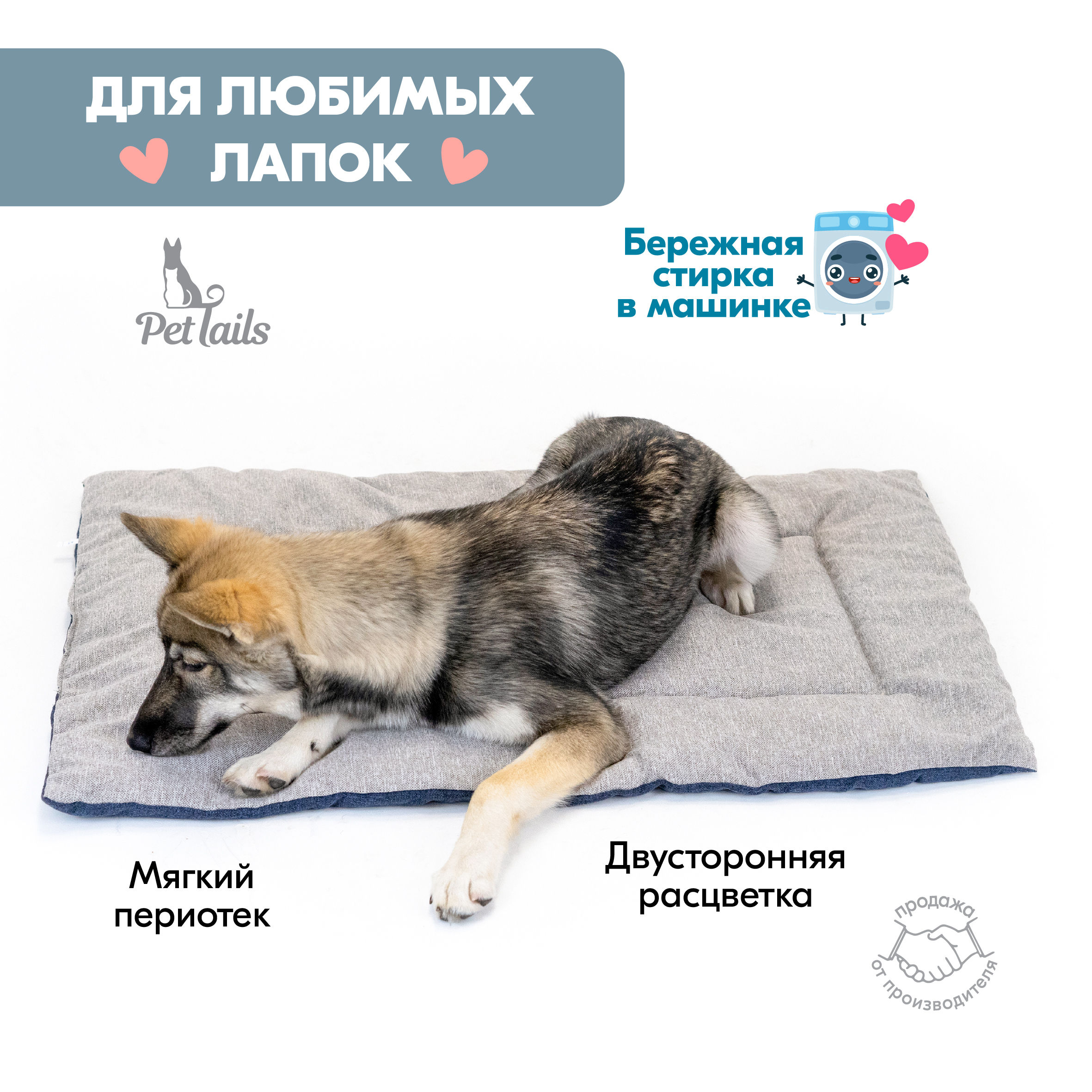 Подстилка прямоугольная стеганая PetTails, серия "Navy" 100*70*3 см ( рогожка, периотек) серая