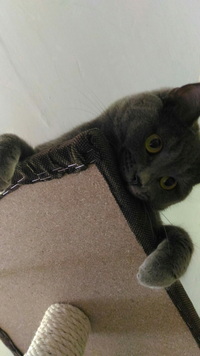 Когтеточка PetTails столбик с мышью 35 х 35 х 55см (столбик джут), дымчатая