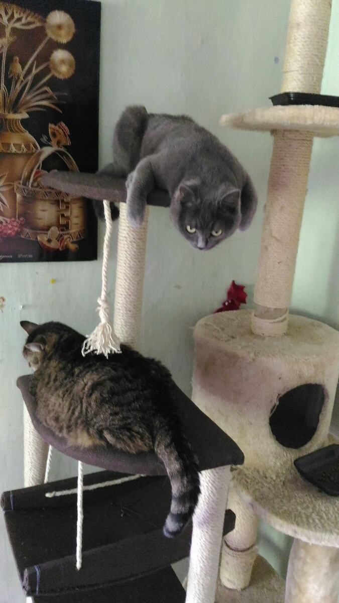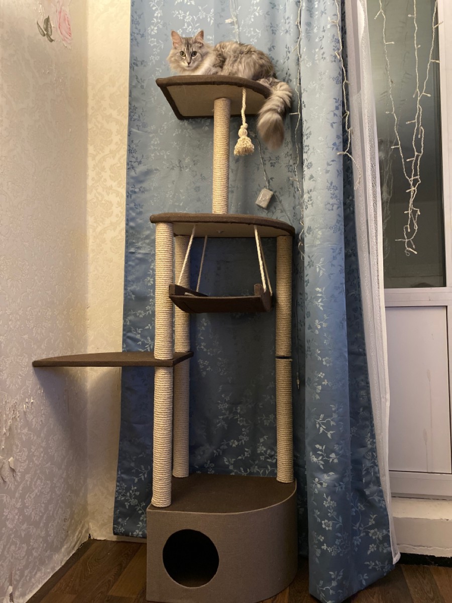 Когтеточка домик "PetTails" двух уровневый квадратный с двумя полками 43 х 35 х 71 см серый