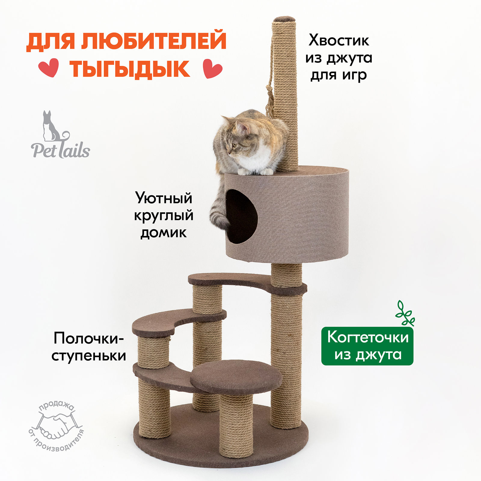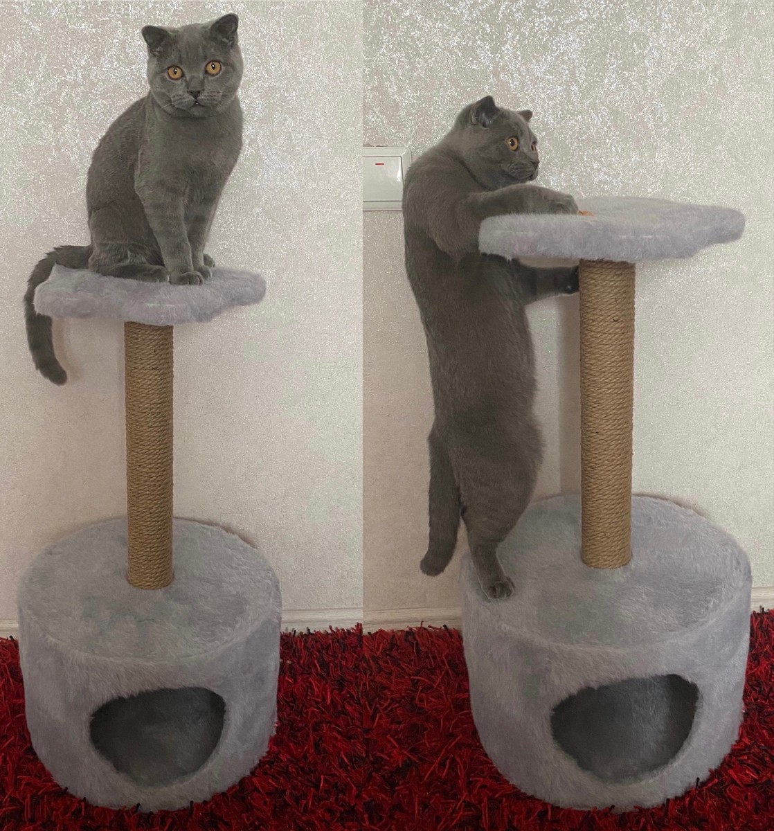 Когтеточка домик для крупных кошек PetTails "Кардинал" 120 х 47 х 168см, серый