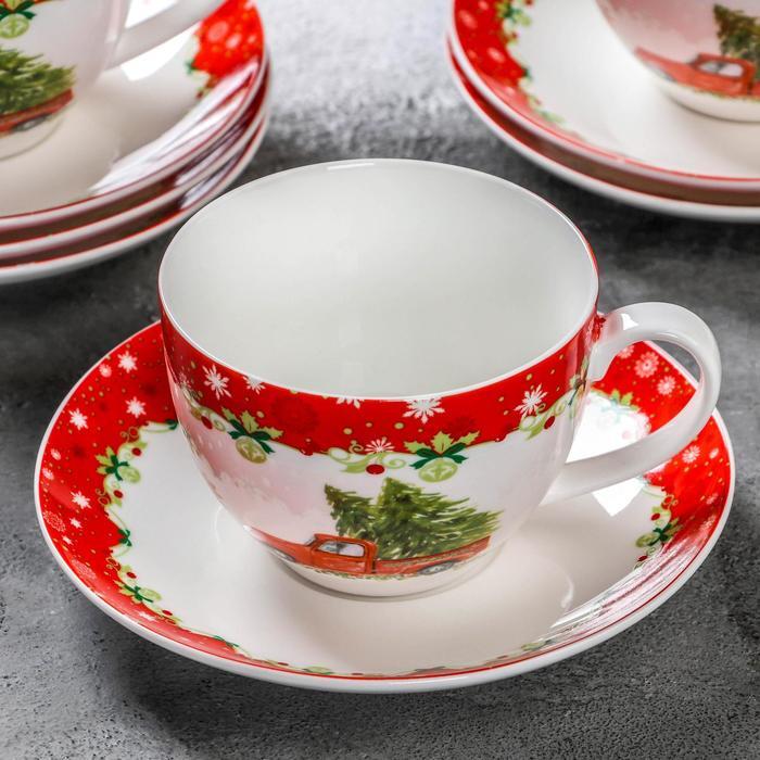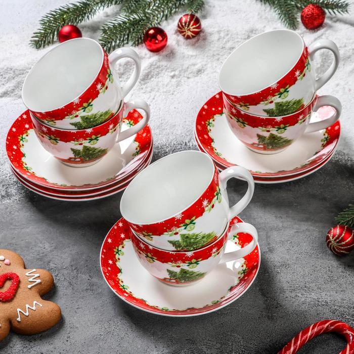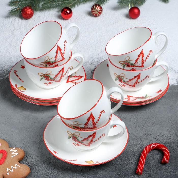 Сервиз чайный "Новогоднее волшебство", 12 предметов: 6 чашек 280 мл, 6 блюдец d 15 см