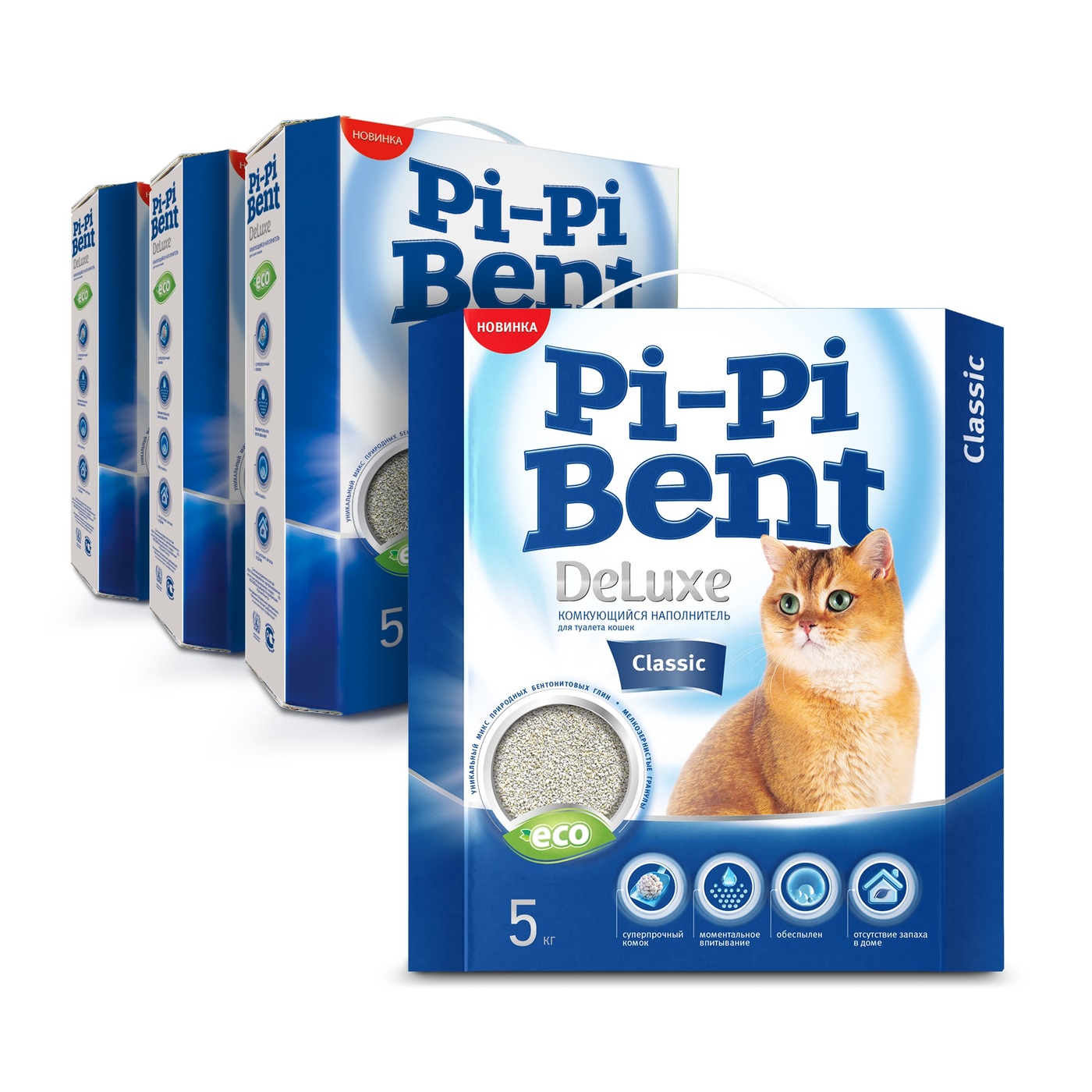 Наполнитель для кошачьего туалета Pi-Pi Bent DeLuxe DeLuxe Classic, бентонитовый, комкующийся, 5 кг х 4 шт