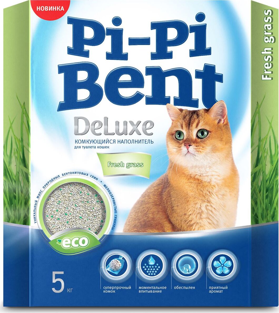 Наполнитель для кошачьего туалета Pi-Pi Bent DeLuxe Fresh Grass, комкующийся, 5 кг
