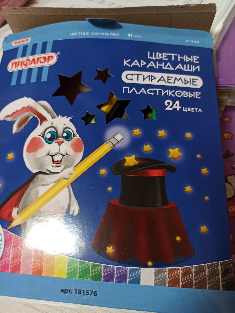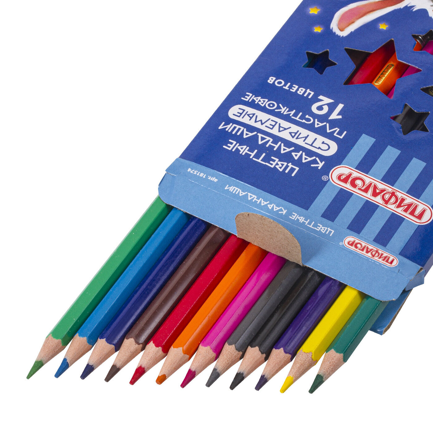 Карандаши цветные стираемые с ластиком Пифагор Магия, 12 цветов, ударопрочные