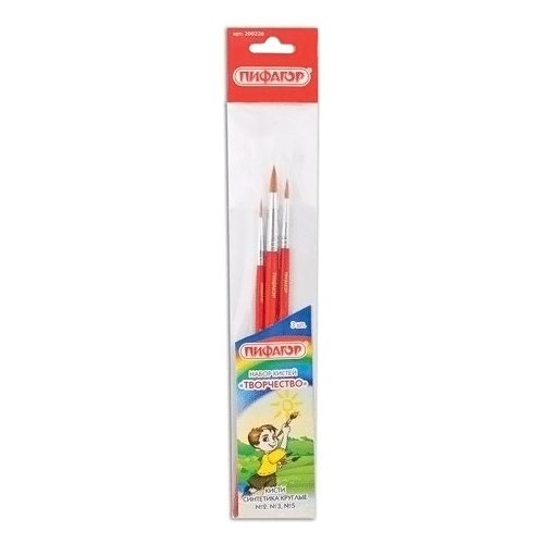 Набор кистей Пифагор синтетика, круглые, с длинной ручкой, 3 шт. (200226)