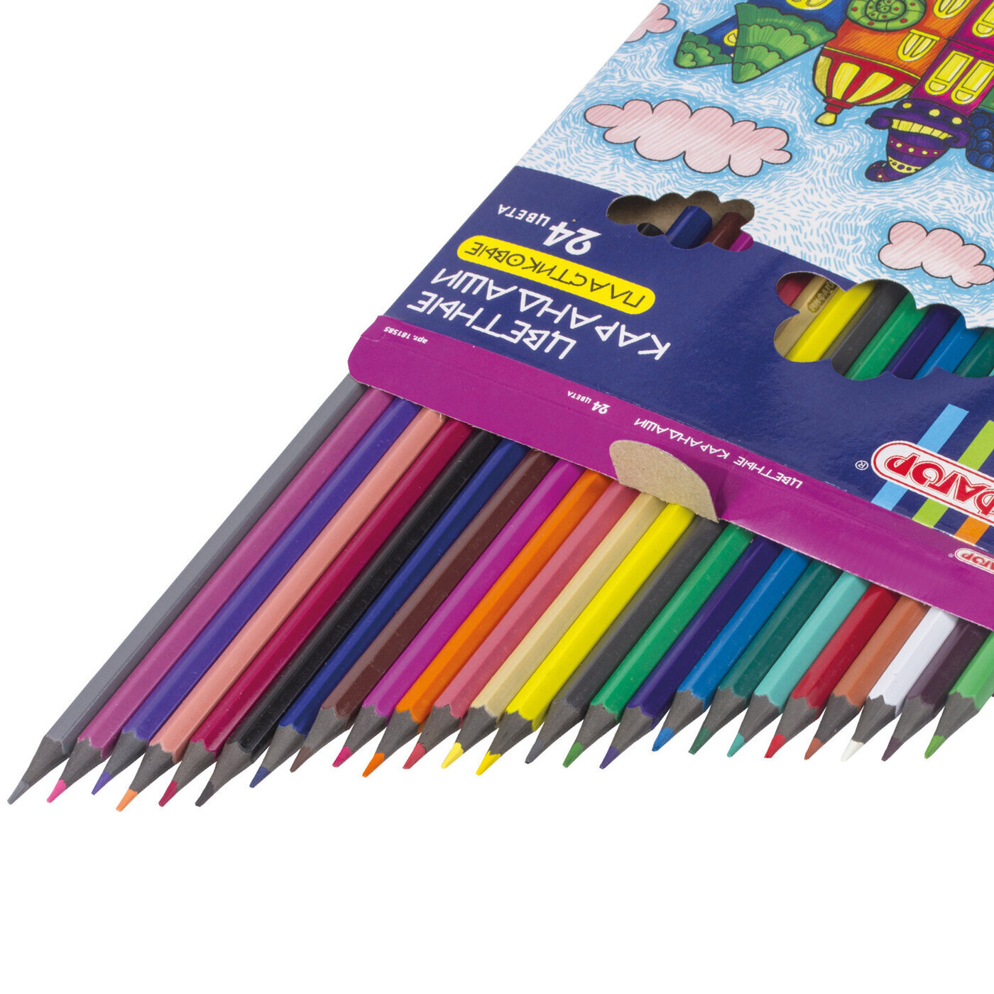 Карандаши цветные Пифагор Сказочный Город, 24 цвета, черный пластик, заточенные
