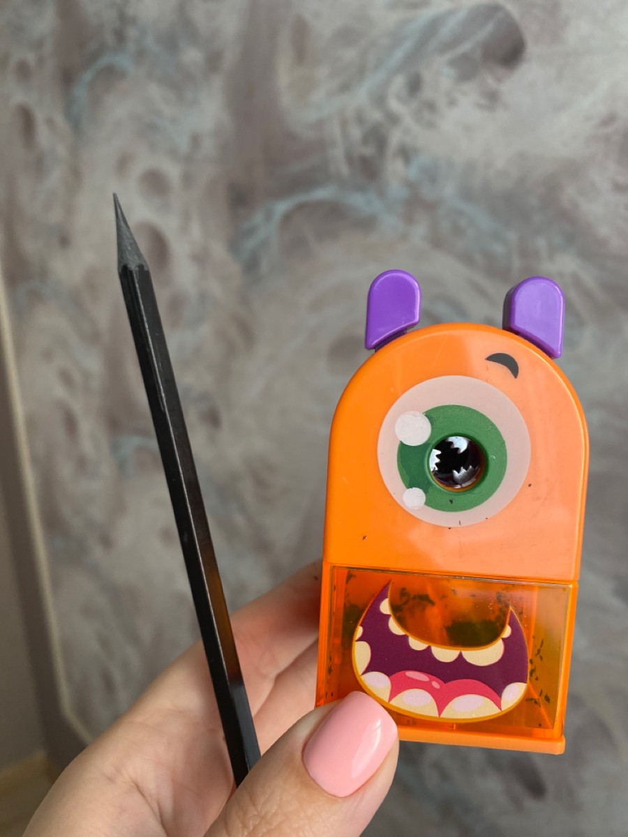 Точилка механическая Пифагор Монстрик, корпус оранжевый, для чернографитных и цветных карандашей