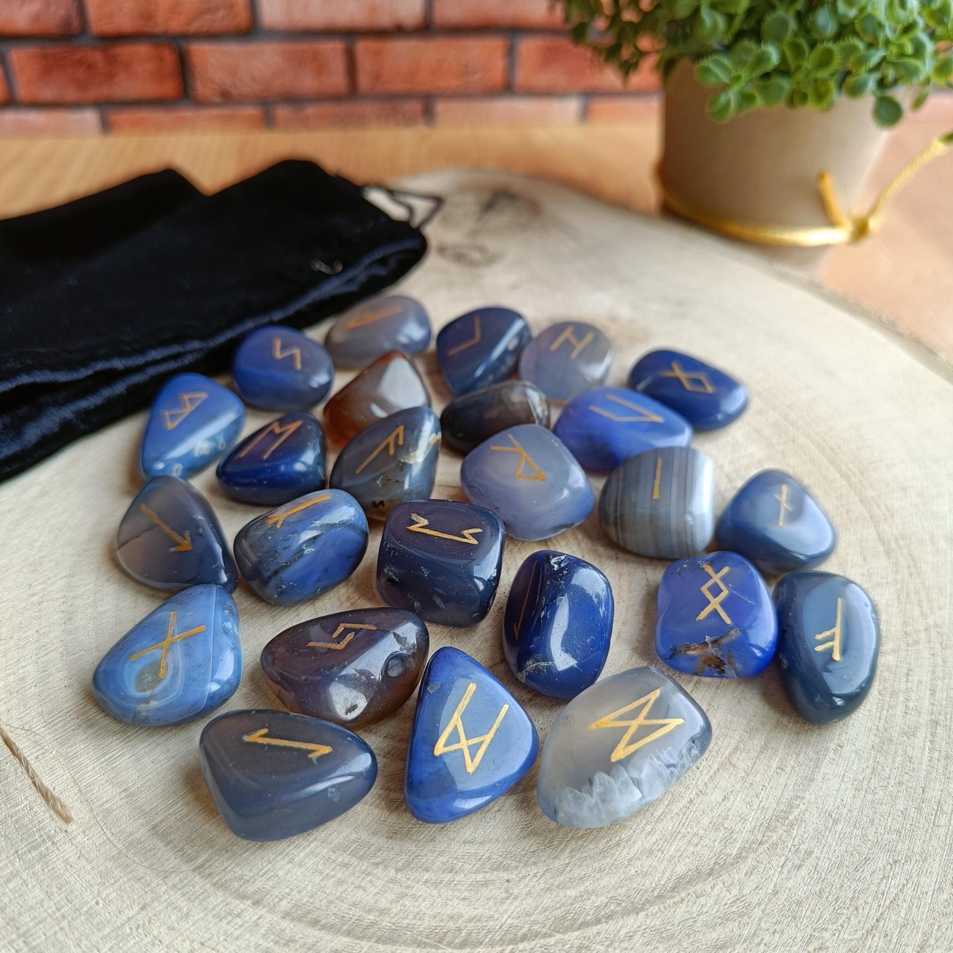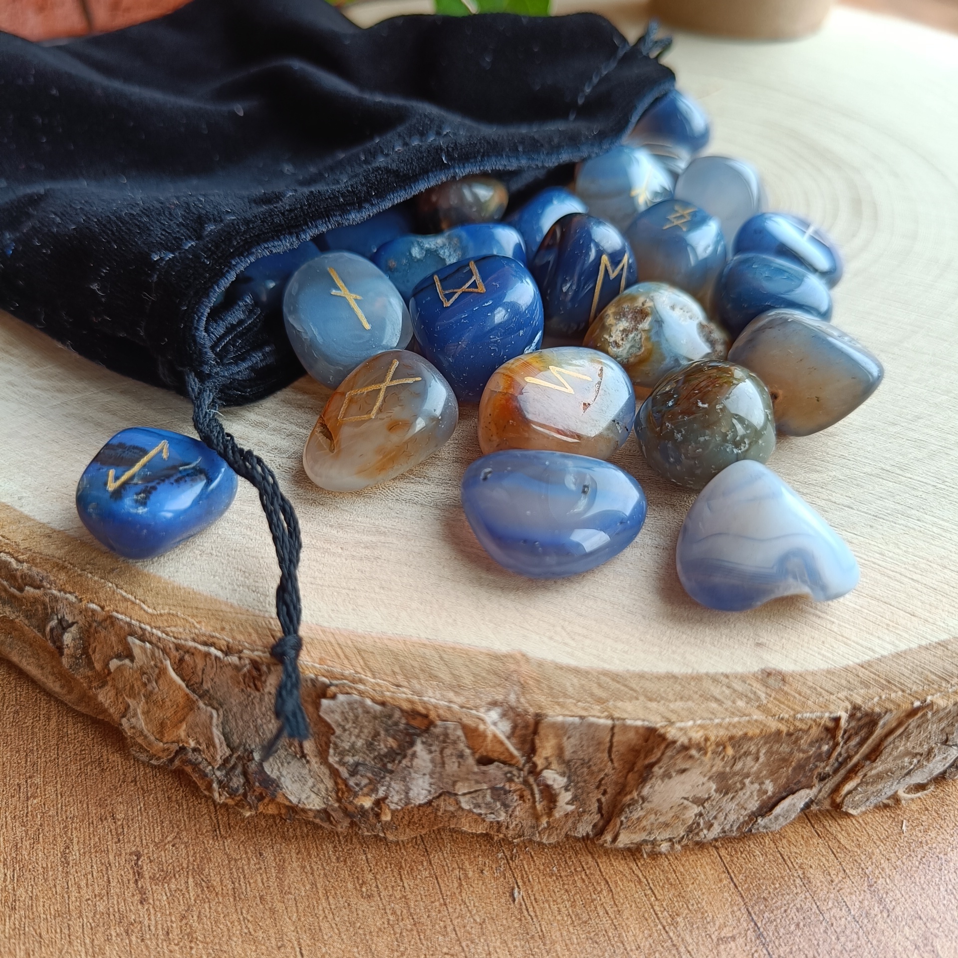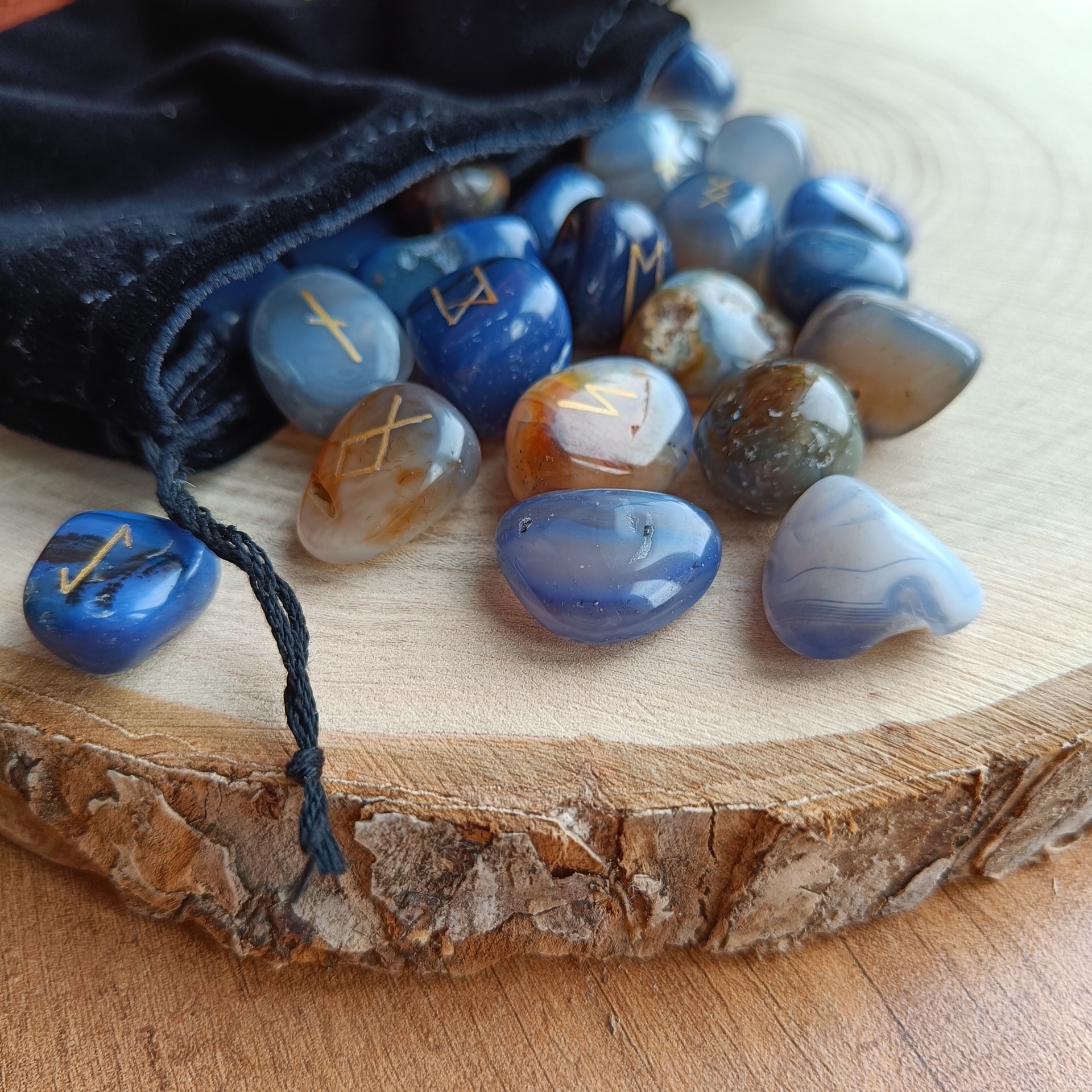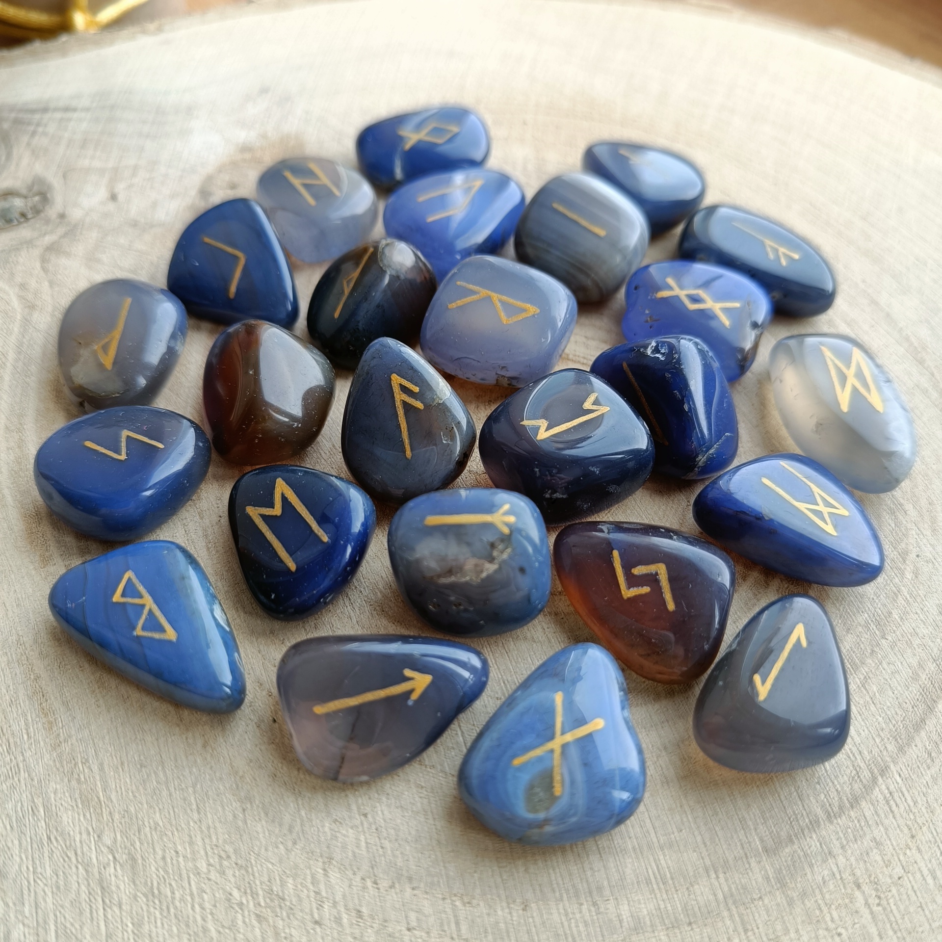 Руны скандинавские из Синего Агата 1,5-2см