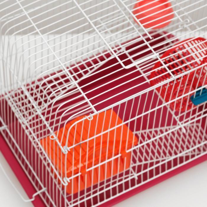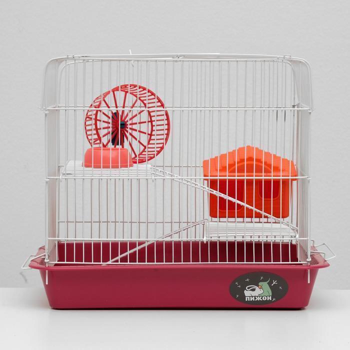 Клетка для грызунов "Пижон" №3, с 2-я этажами, укомплектованная, 33*24*28 см, малиновая
