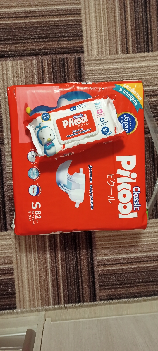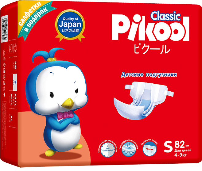 Подгузники детские Пикул Классик S (4-9кг) x82 + подарок салфетки Пикул Классик х80