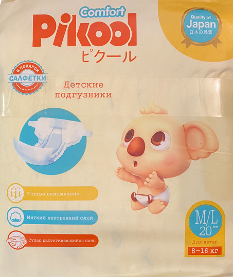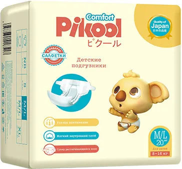 Pikool/ Пикул Комфорт Подгузники 8-16 кг, 20 шт + подарок: салфетки влажные Пикул Комфорт 0+ 10 шт