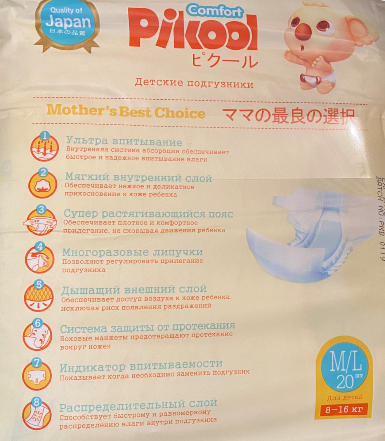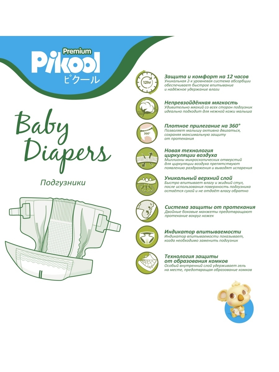 Подгузники детские Пикул (Pikool) Комфорт L (9-14 кг) x64 шт.