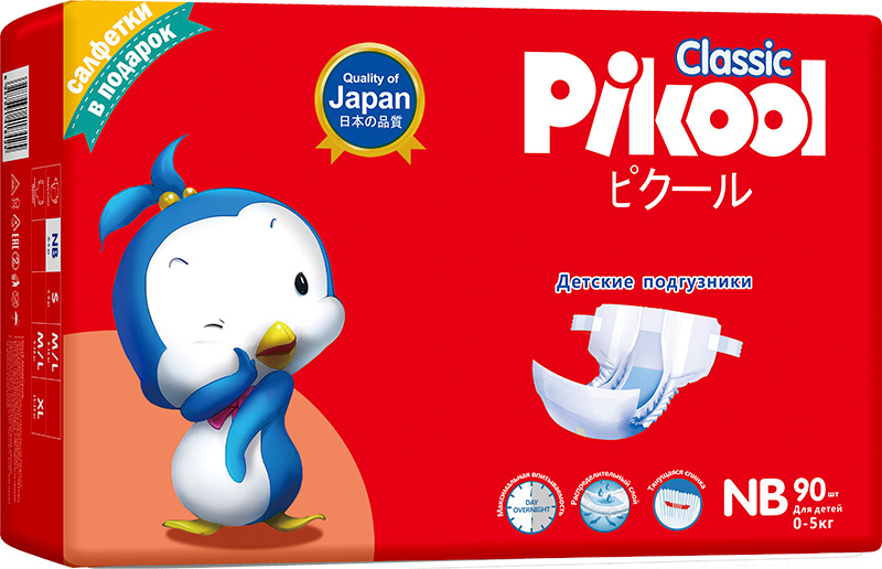 Подгузники детские Пикул Классик NB (0-5кг) x90 + подарок салфетки Пикул Классик х80