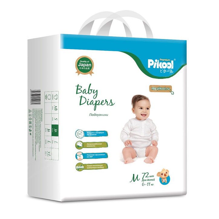 Подгузники деткие Пикул Pikool Premium M (6-11кг) х72