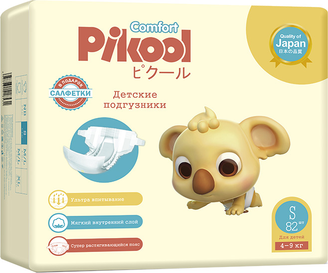 Подгузники детские Пикул Комфорт S (4-7(9)кг) x82 + подарок салфетки Пикул Комфорт х80