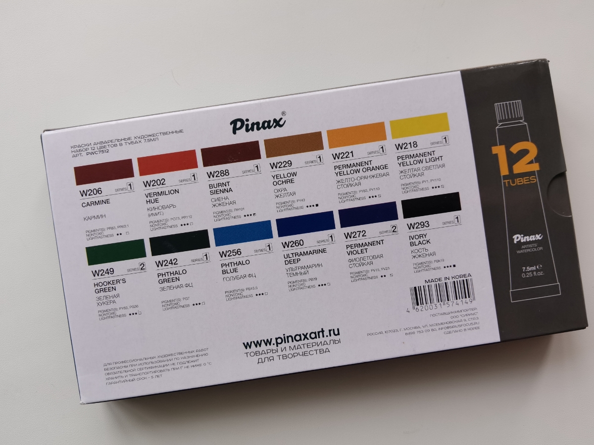 Набор акварели Pinax 12 цветов в тубах 7,5 мл PWC7512