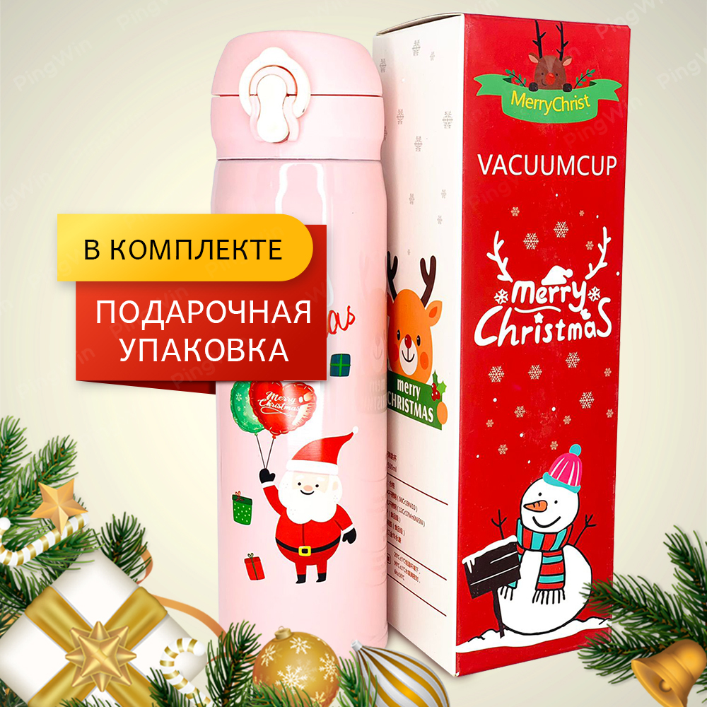 Термокружка PingWin Термокружка/ термос с новогодним принтом/ подарок на Новый год 500мл, 500 мл