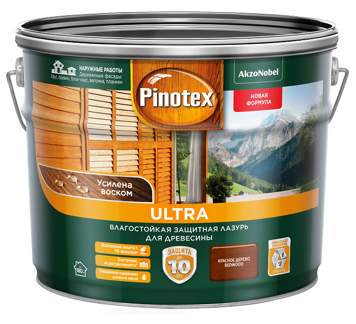 PINOTEX ULTRA лазурь защитная влагостойкая для защиты древесины до 10 лет, ореховое дерево (9л)