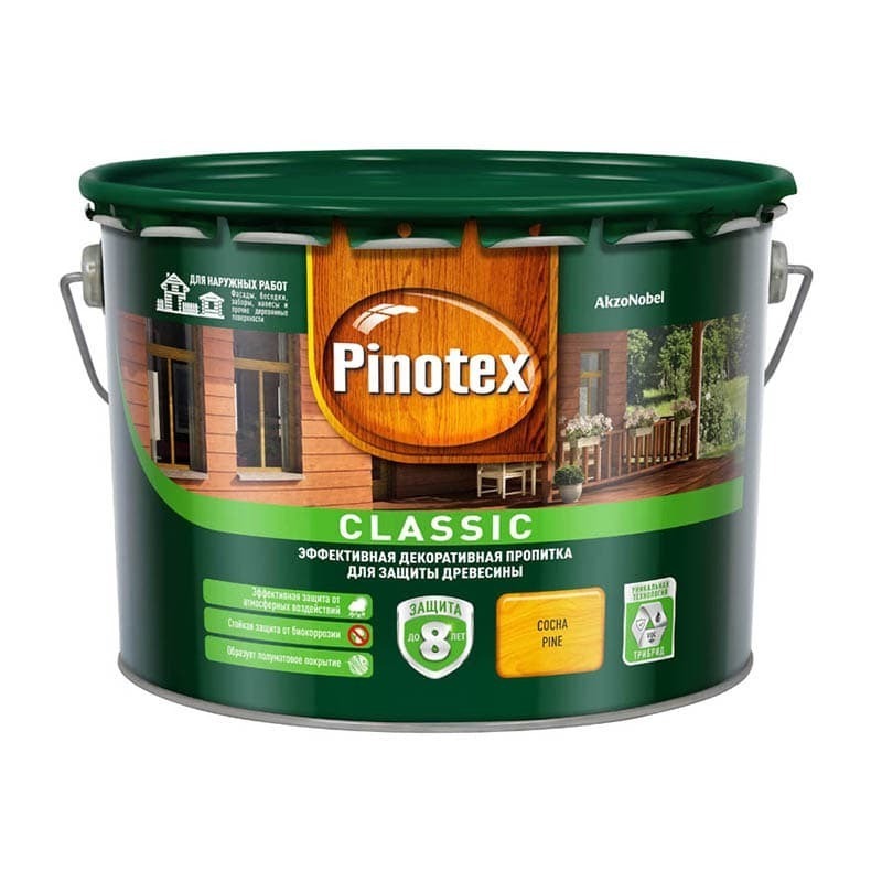 Пропитка декоративная для защиты древесины Pinotex Classic сосна 9 л.