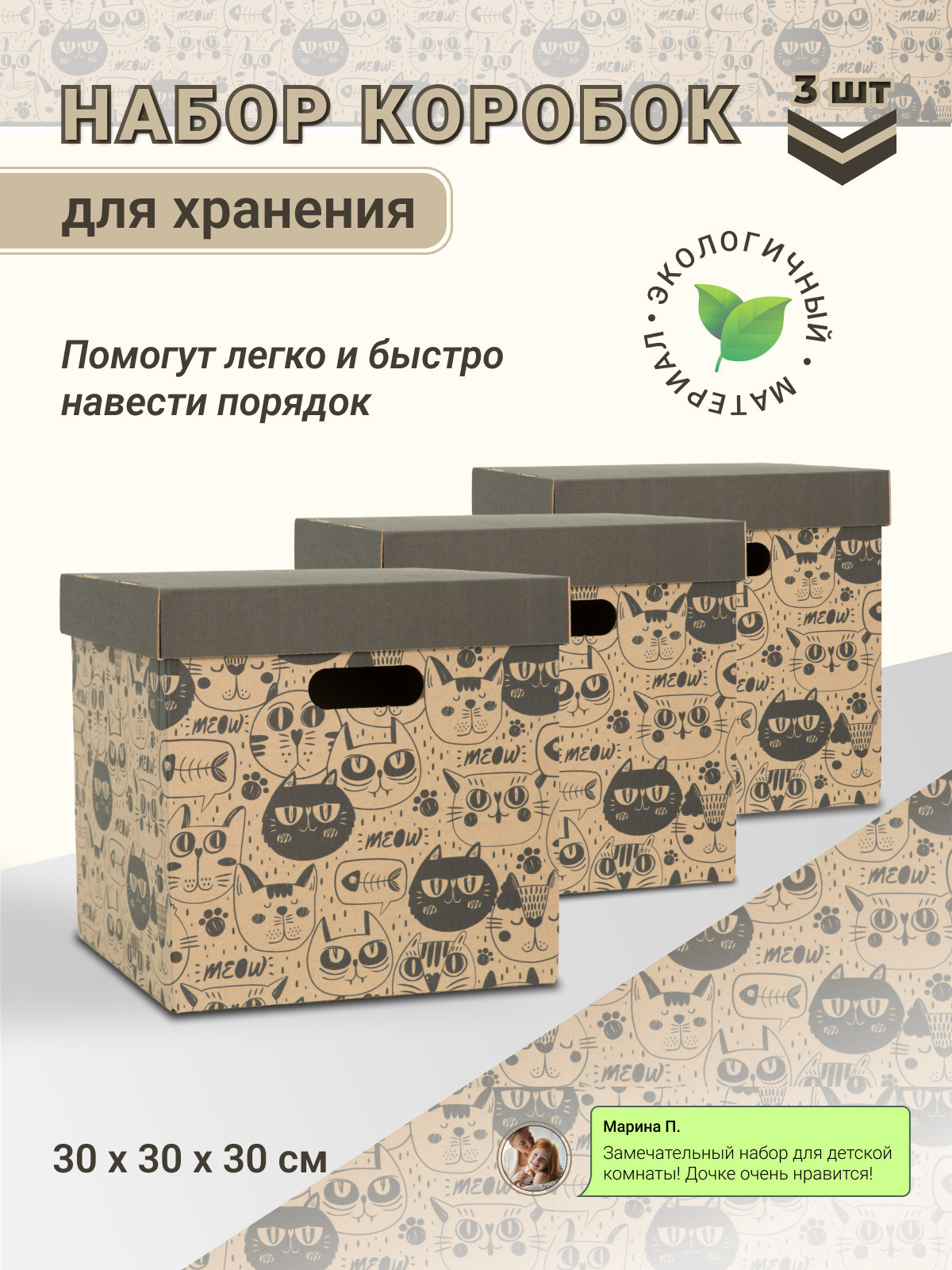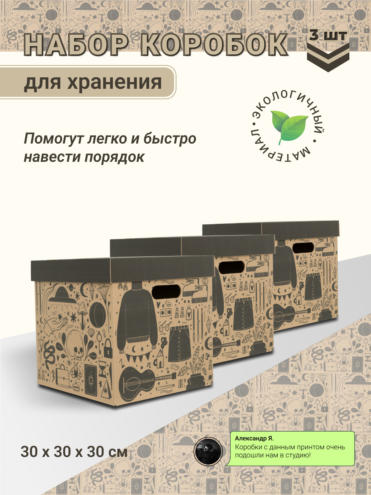 Набор картонных коробов / Картонная коробка для хранения / Коробка для хранения с крышкой