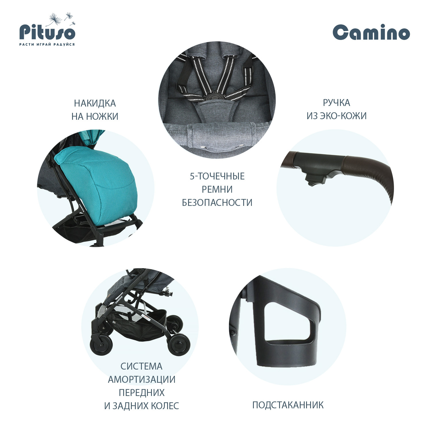 Прогулочная коляска Pituso Camino колеса EVA, чехол на ножки Black/Tiffany/Черный/Морская волна