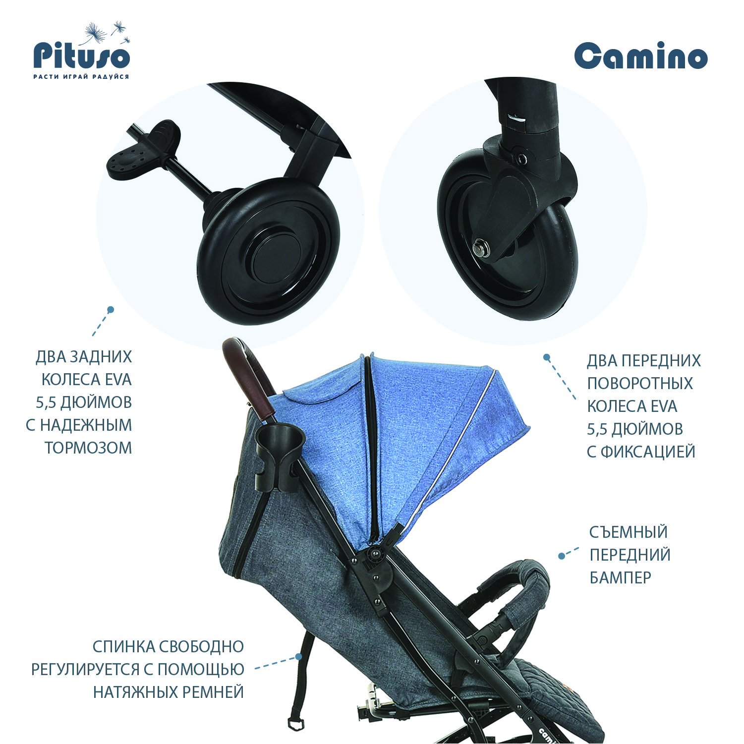 Прогулочная коляска Pituso Camino Black/Jeans Х3