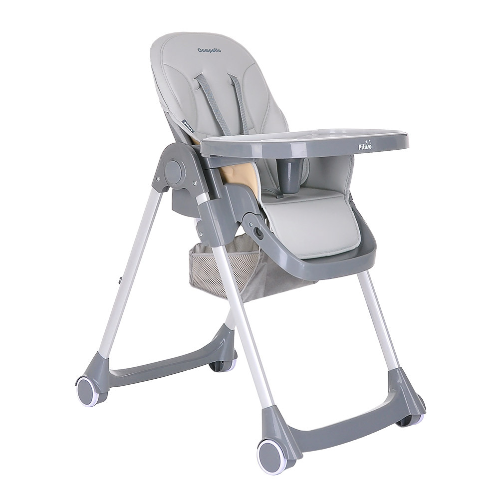 Стул для кормления детский Pituso Compatto 2 колесика, экокожа Light Grey/Светло-серый