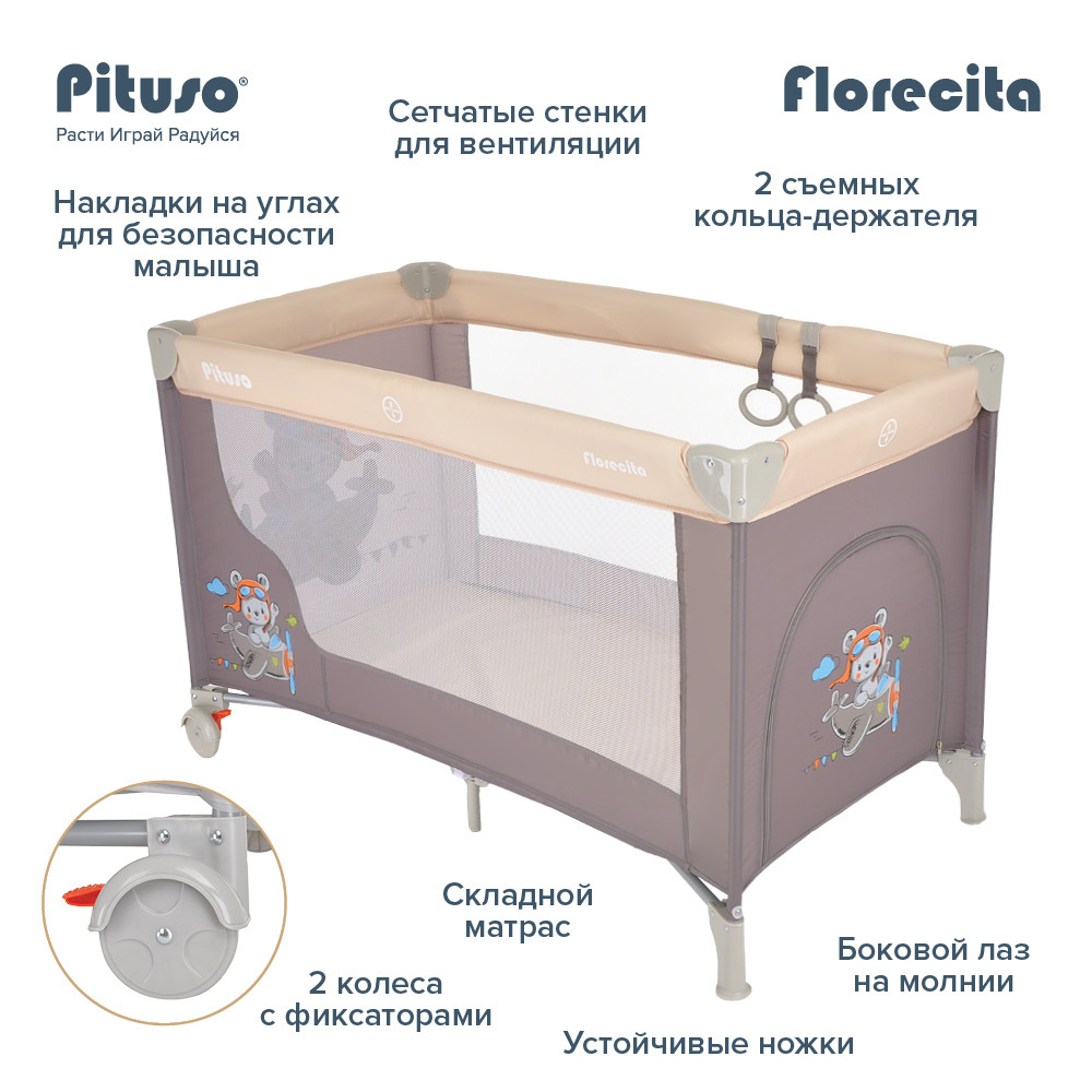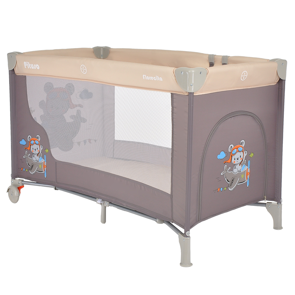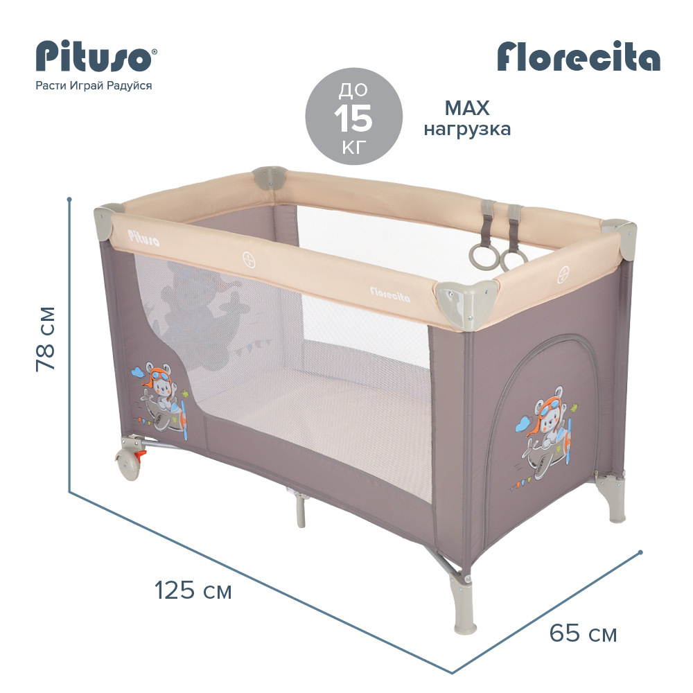Манеж для детей Pituso Florecita 1 уровень, 2 кольца, 2 колеса, лаз на молнии, 125х65х78 см Beige/Бежевый