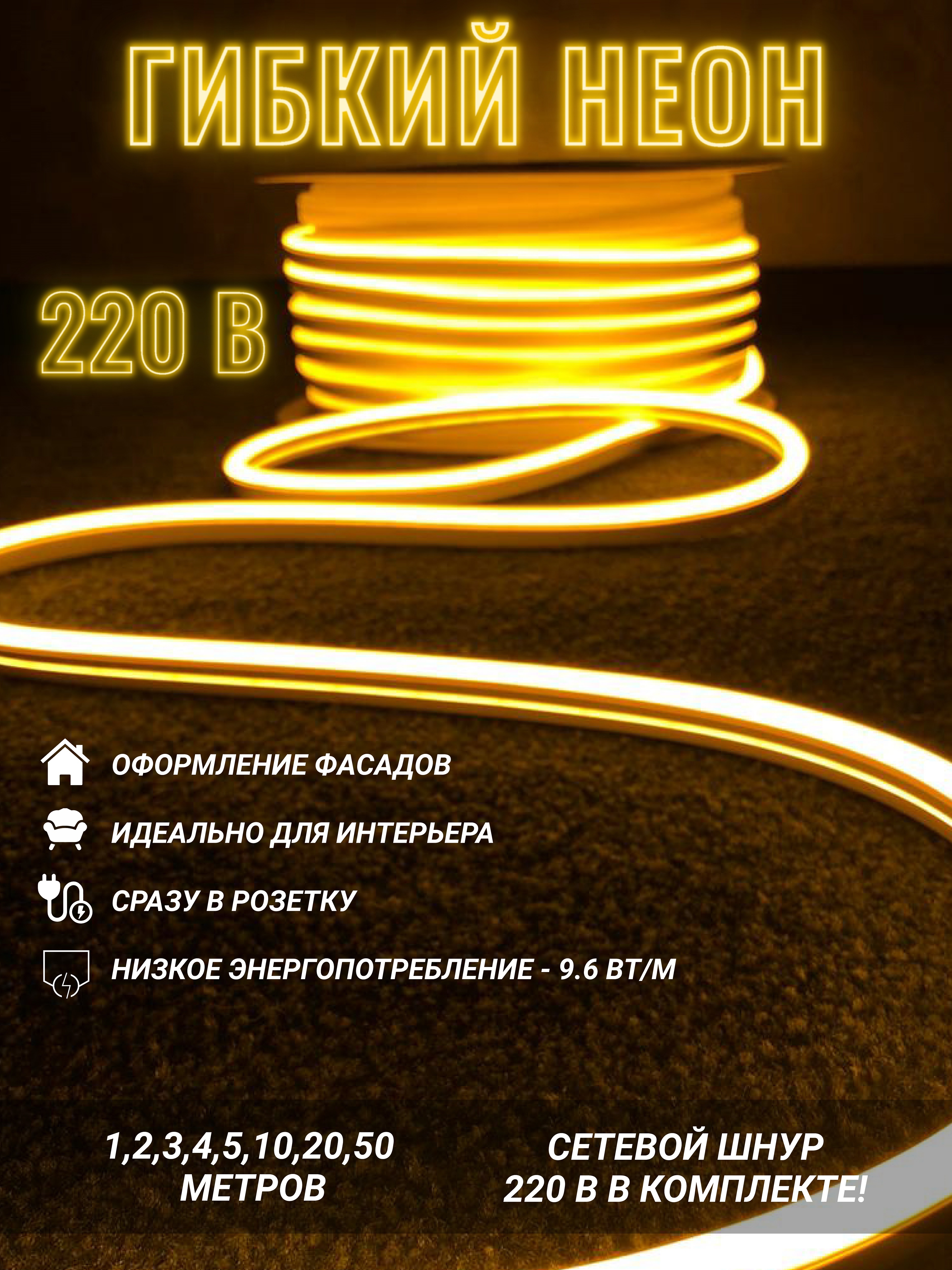Светодиодная лента PJ Neon 4м, 220В, IP67, 120 LED/m Гибкий неон