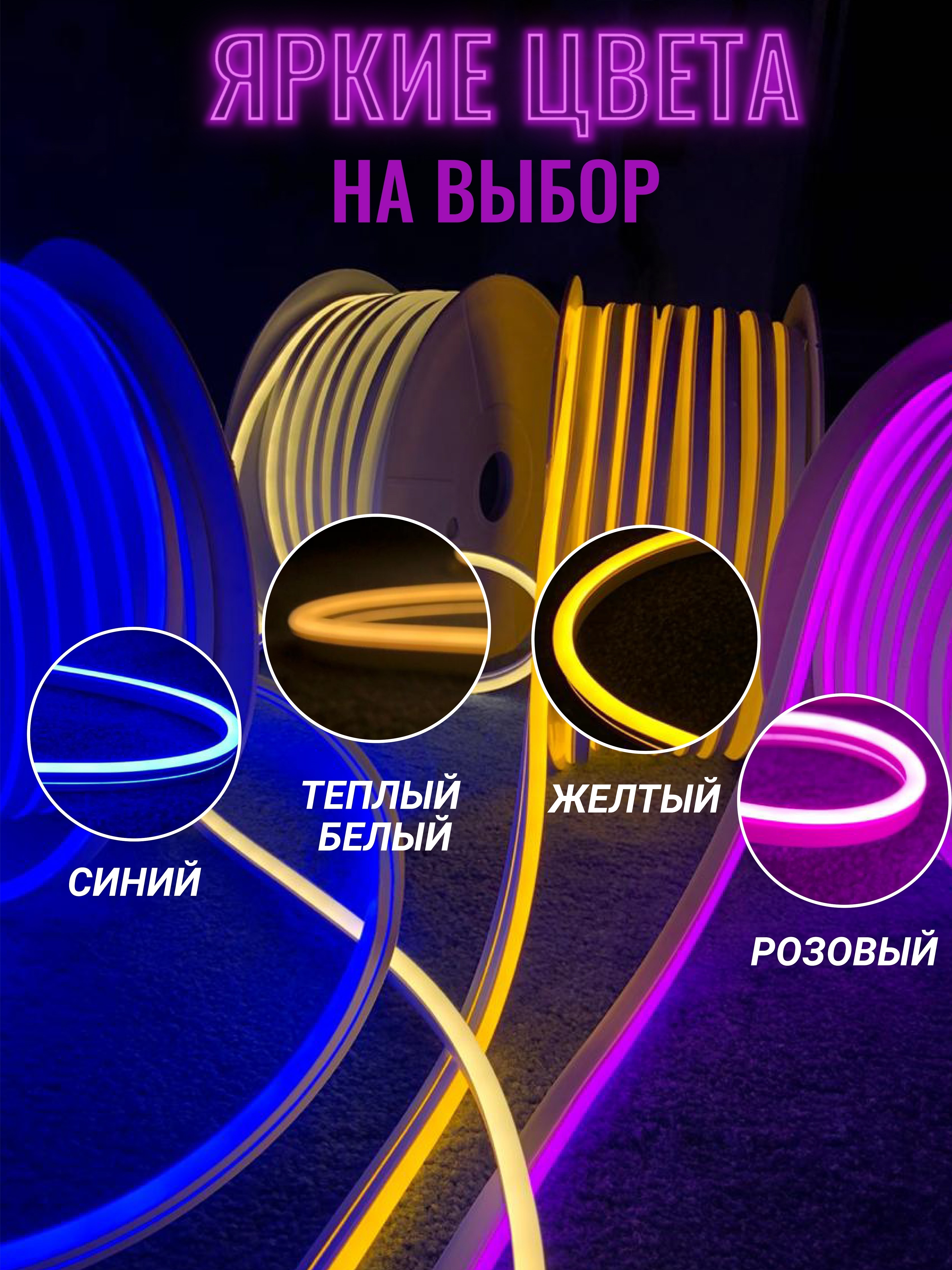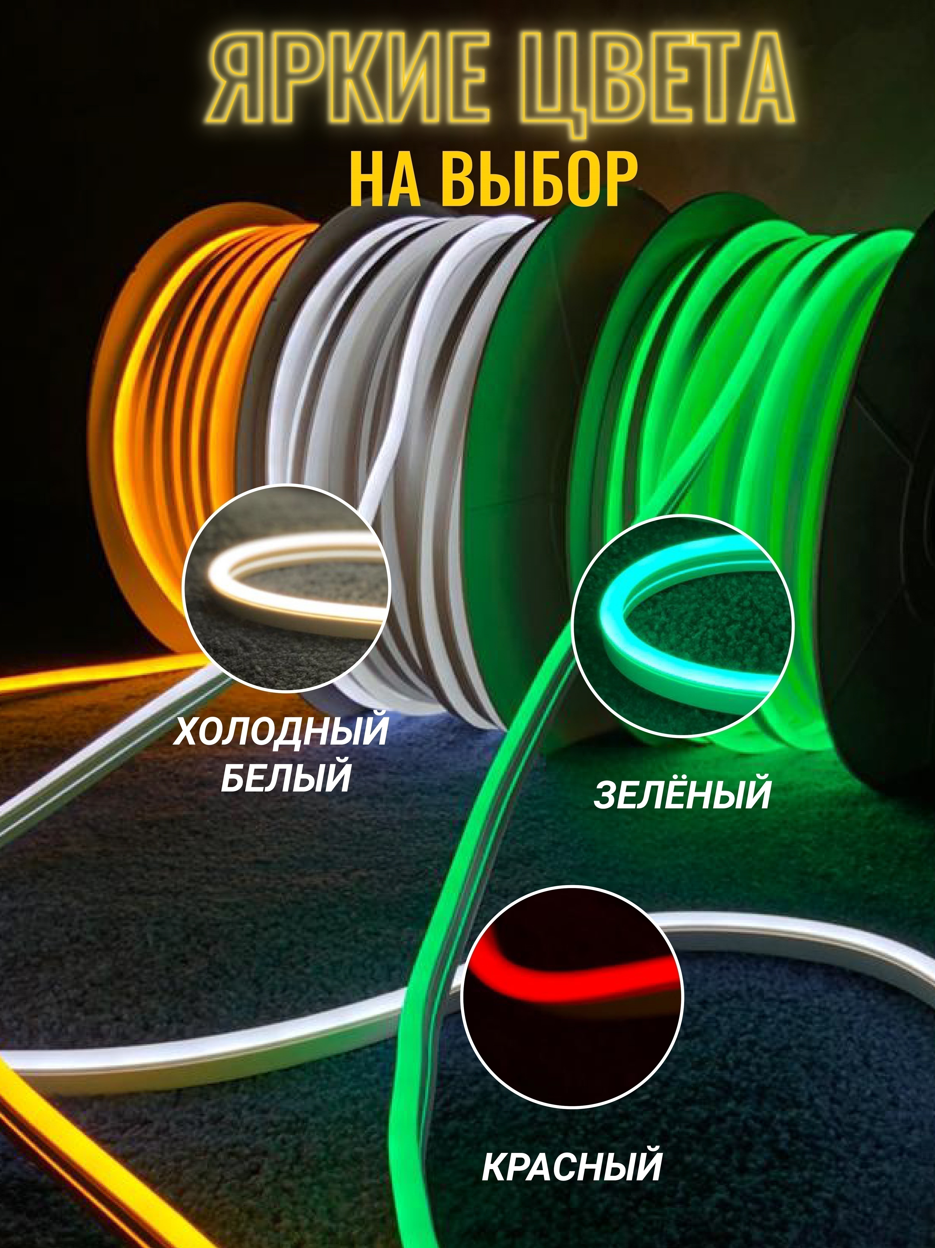 Светодиодная лента PJ Neon 5м, 12В, IP67, 120 LED/m Гибкий неон