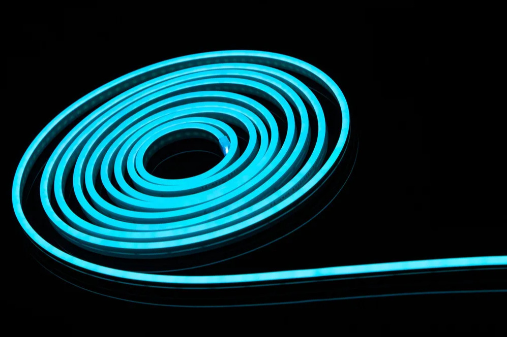 Светодиодная лента PJ Neon 5м, 12В, IP67, 120 LED/m Тонкий гибкий неон, голубой