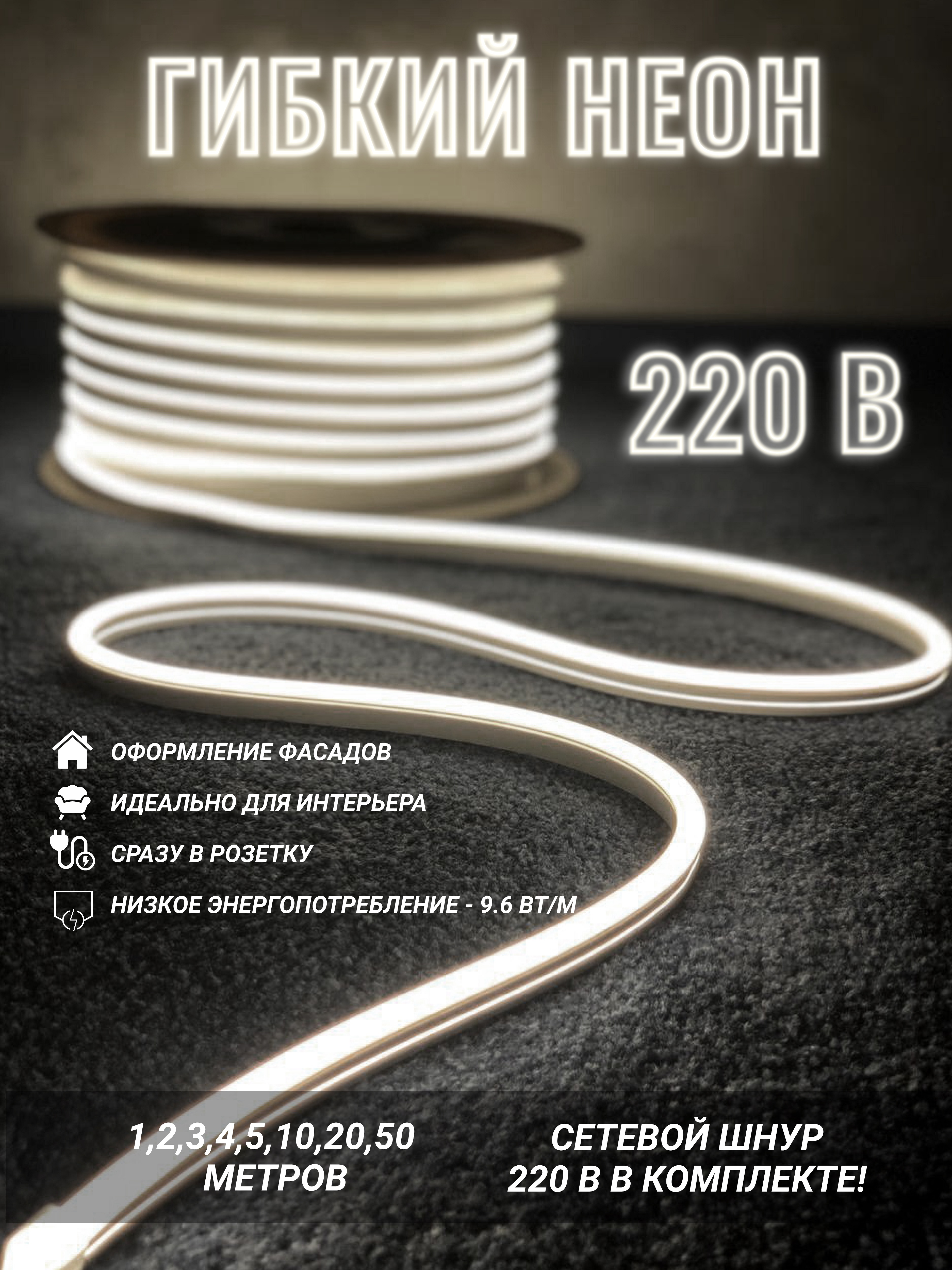 Светодиодная лента PJ Neon 4м, 220В, IP67, 120 LED/m Гибкий неон