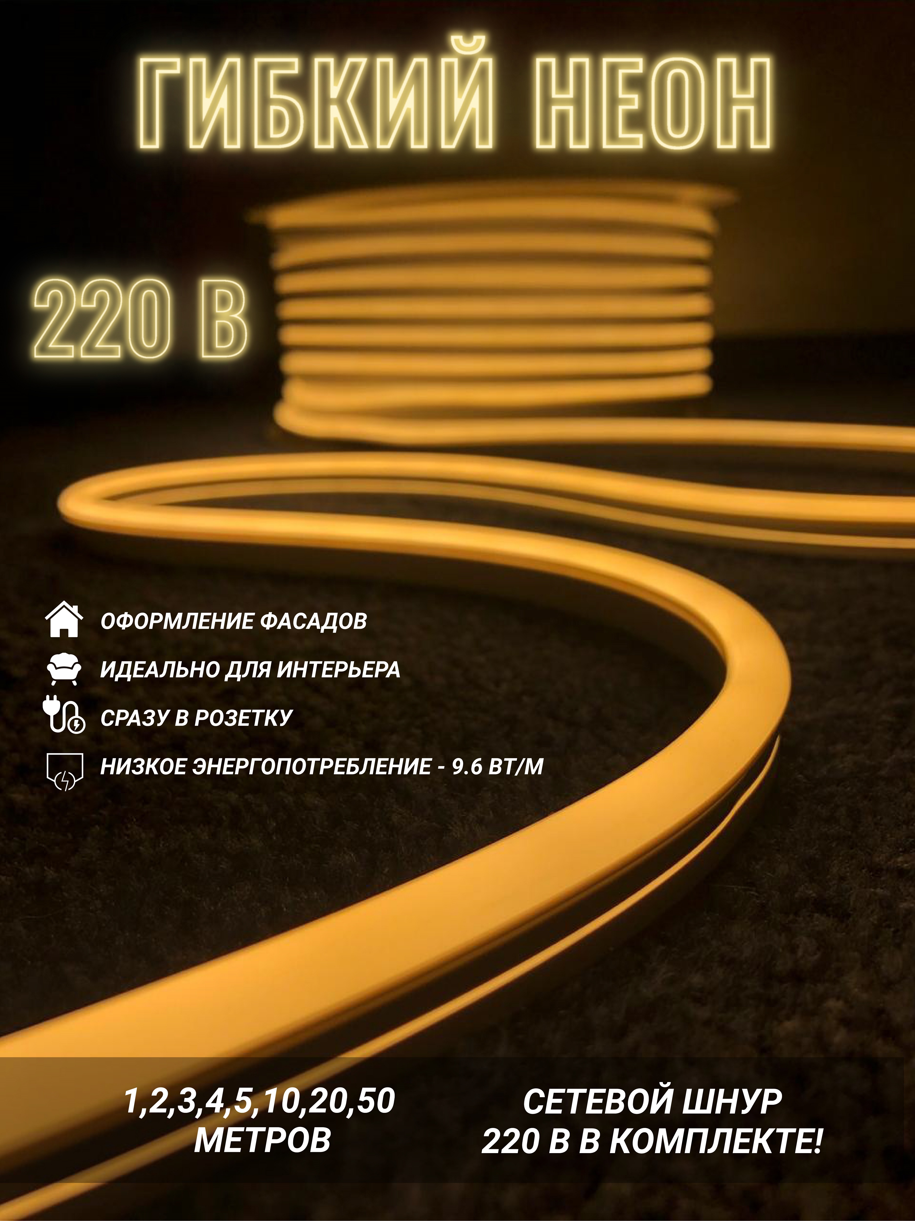 Светодиодная лента PJ Neon 4м, 220В, IP67, 120 LED/m Гибкий неон