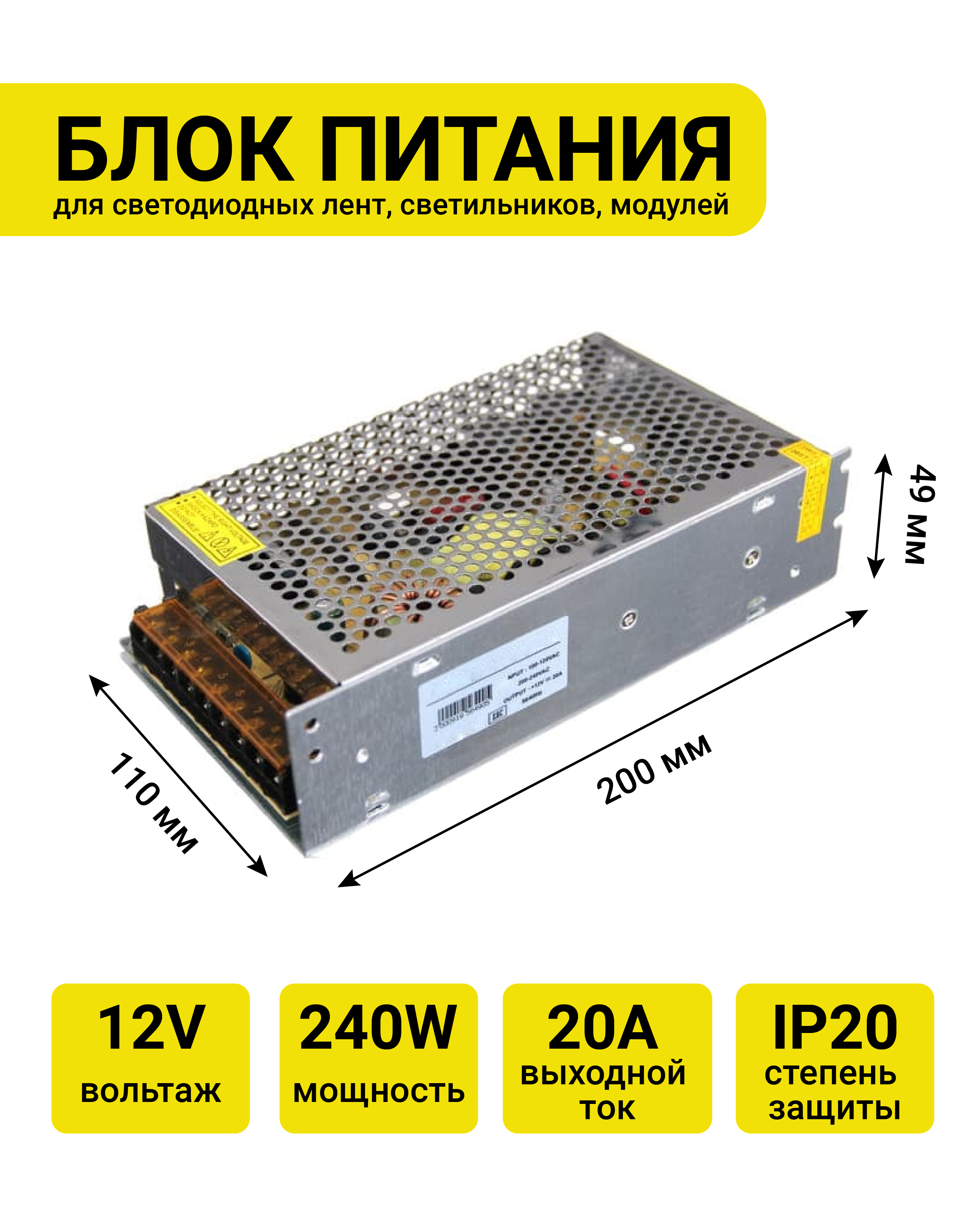 Блок питания для светильника PJ Neon, 12В, 240 Вт
