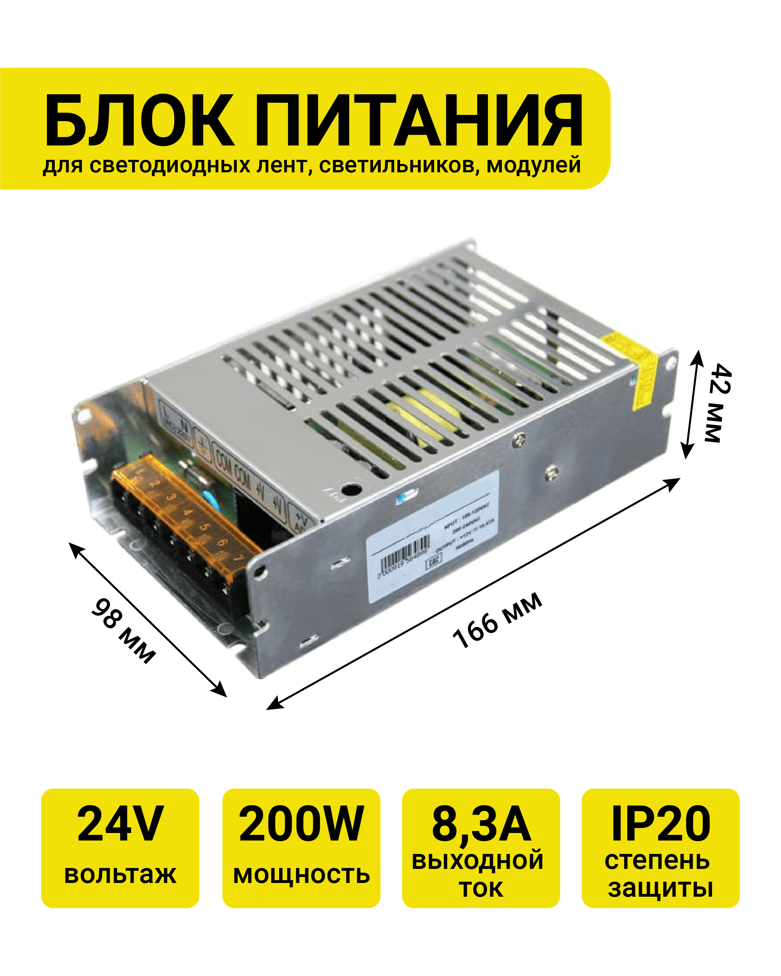 Блок питания для светильника PJ Neon, 24В, 200 Вт