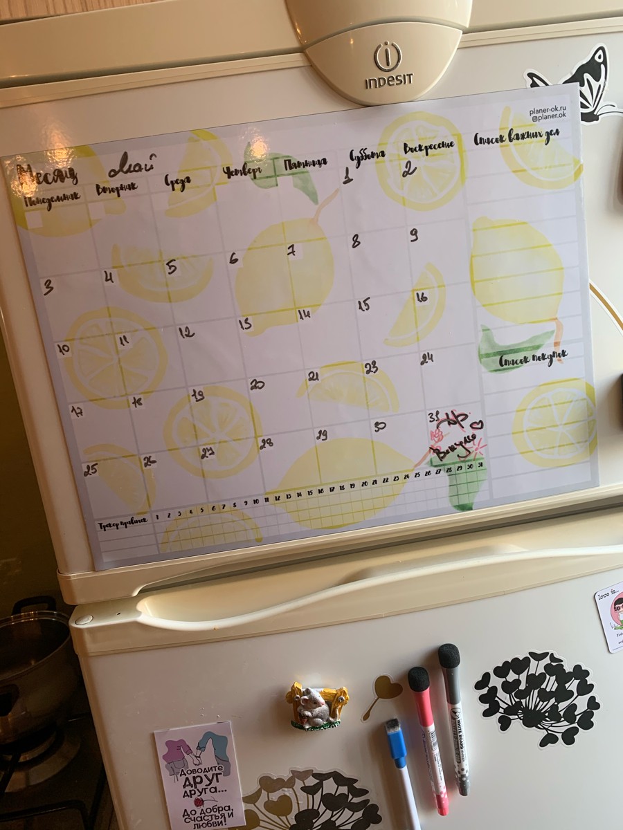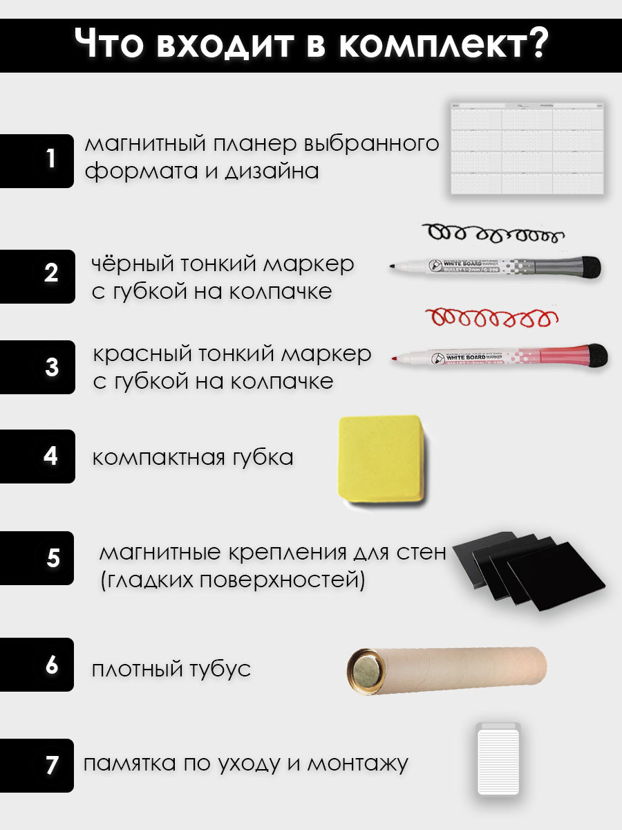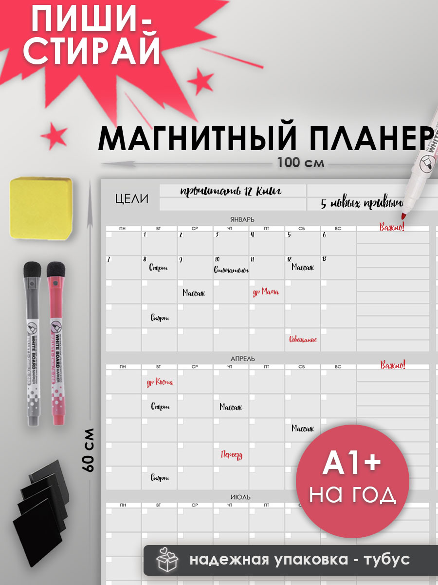 Магнитный планер на год 60 см х 100 см / маркерная доска / планер 2022