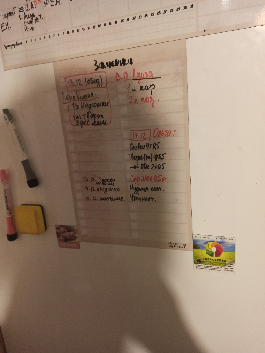 Магнитный планер А3 с маркерами и губкой (Авокадо) Уцененный товар (№1)