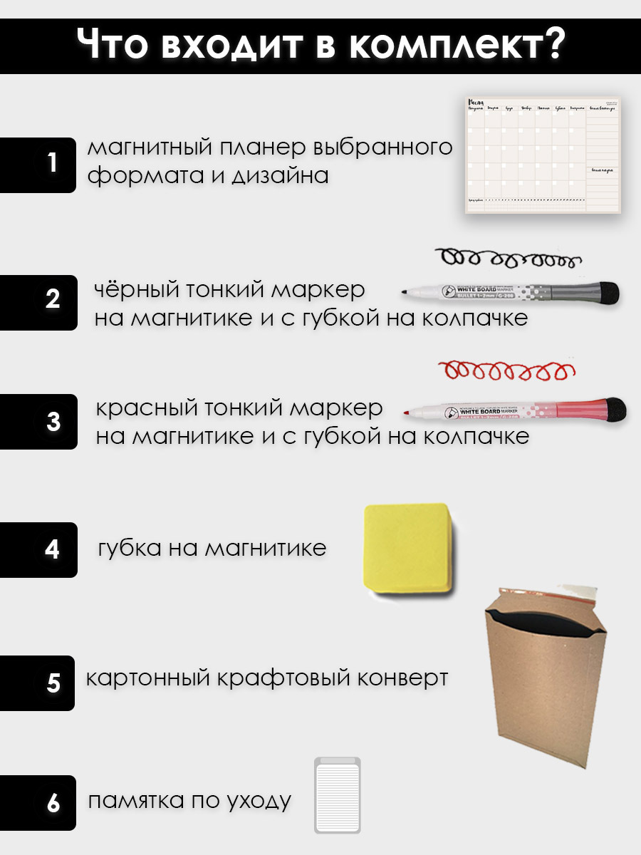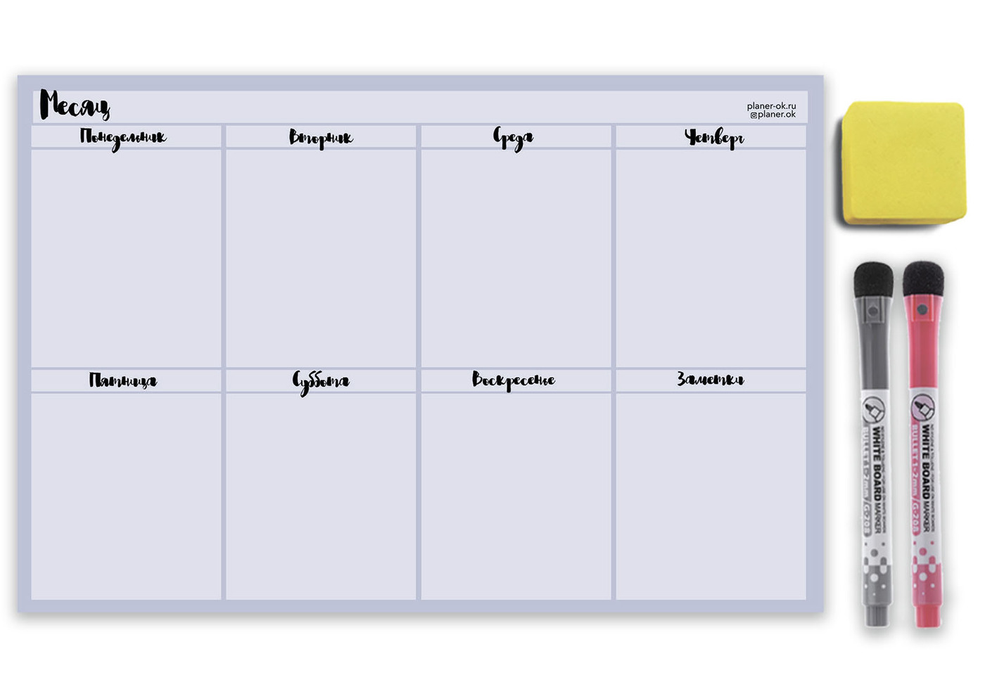 Магнитный планер на неделю А4 с маркерами и губкой (Лаванда)