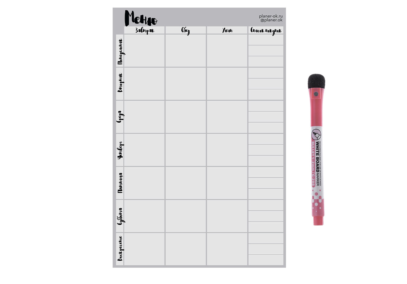 Магнитное меню А4 (Графит) с поверхностью пиши/стирай на холодильник