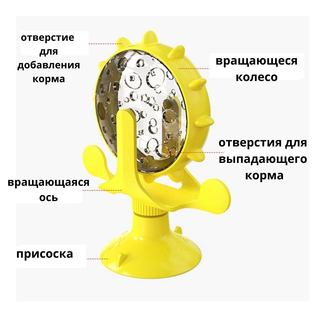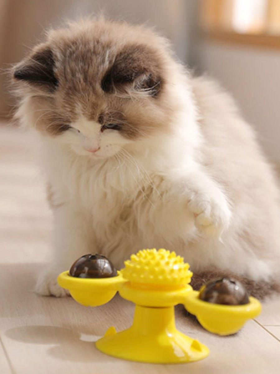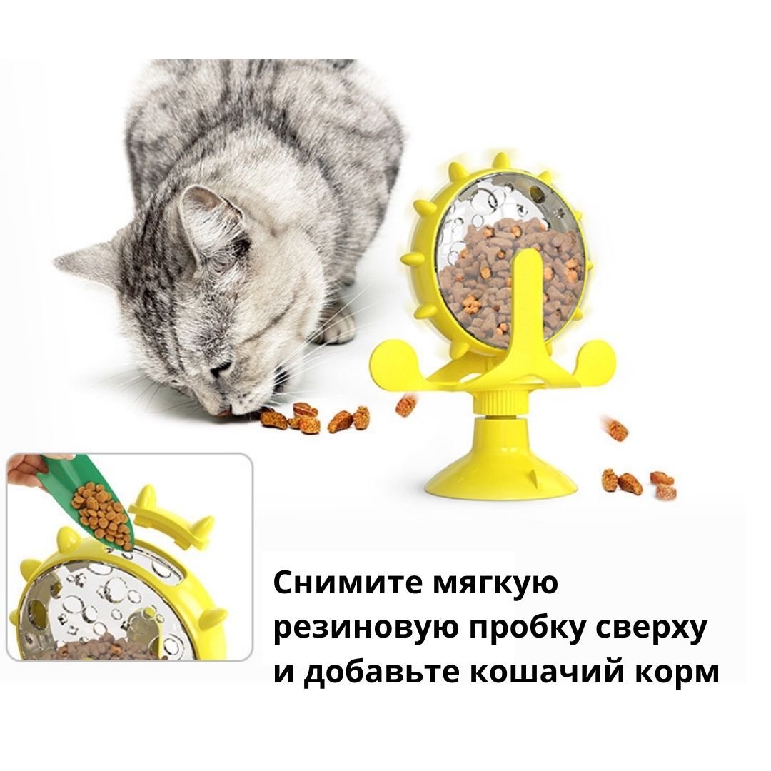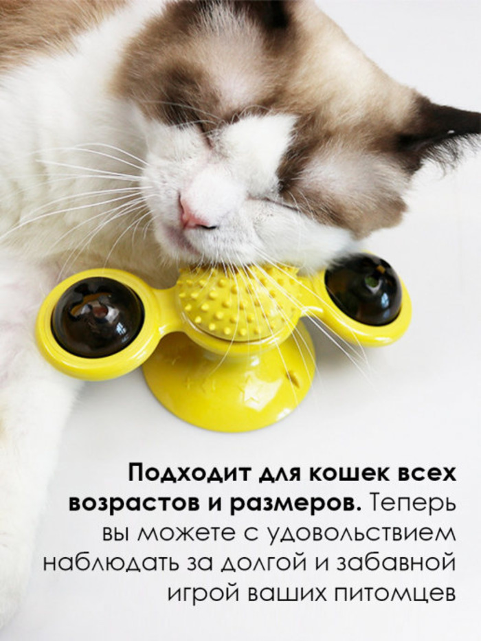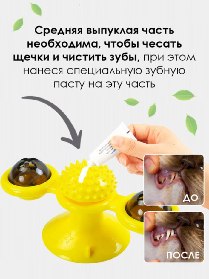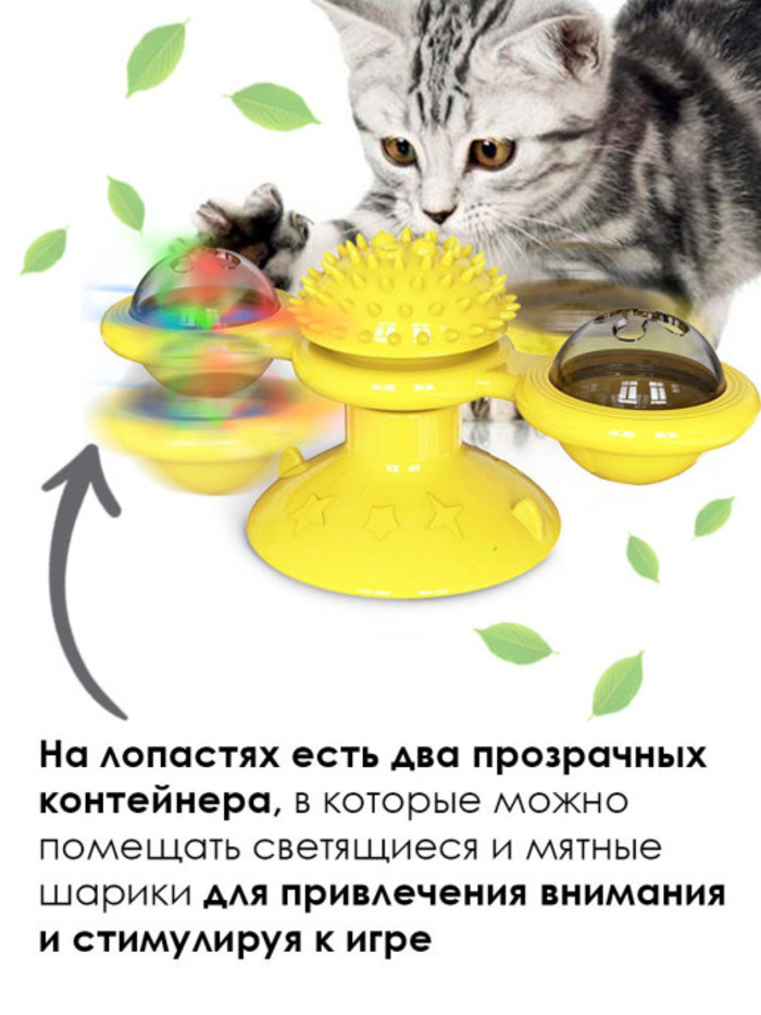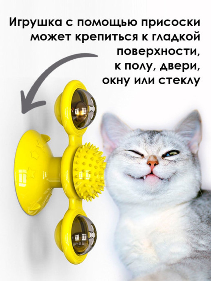 Игрушка для кошек интерактивная с присоской со светящимся шариком и мятой, желтый