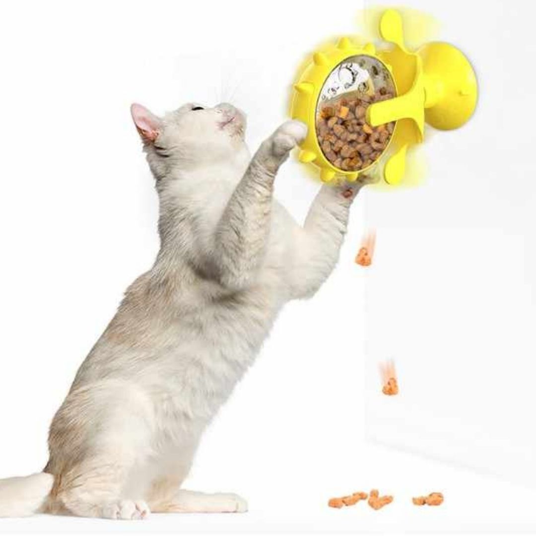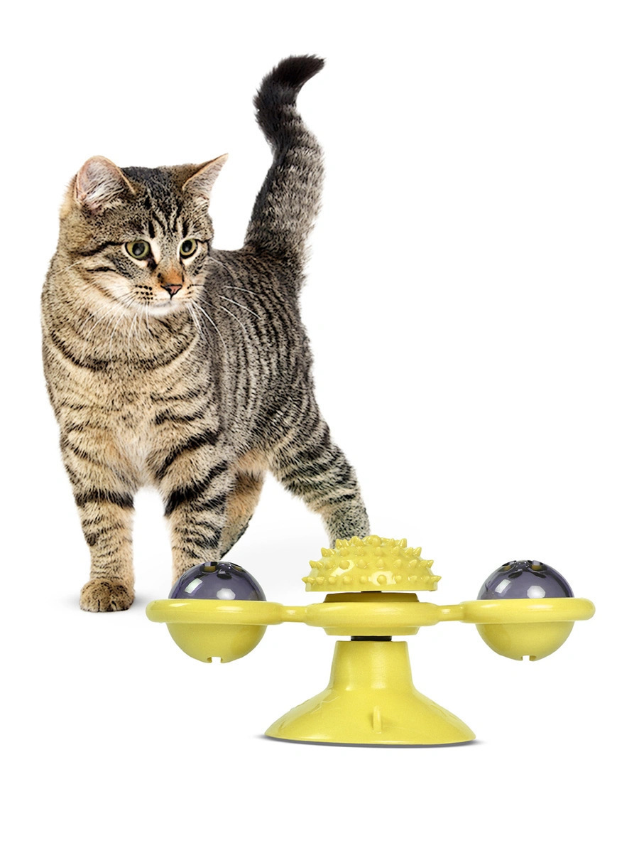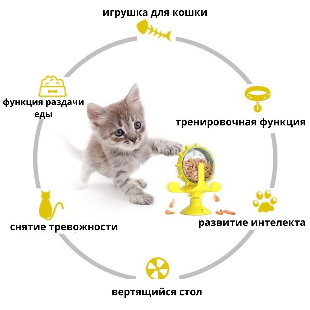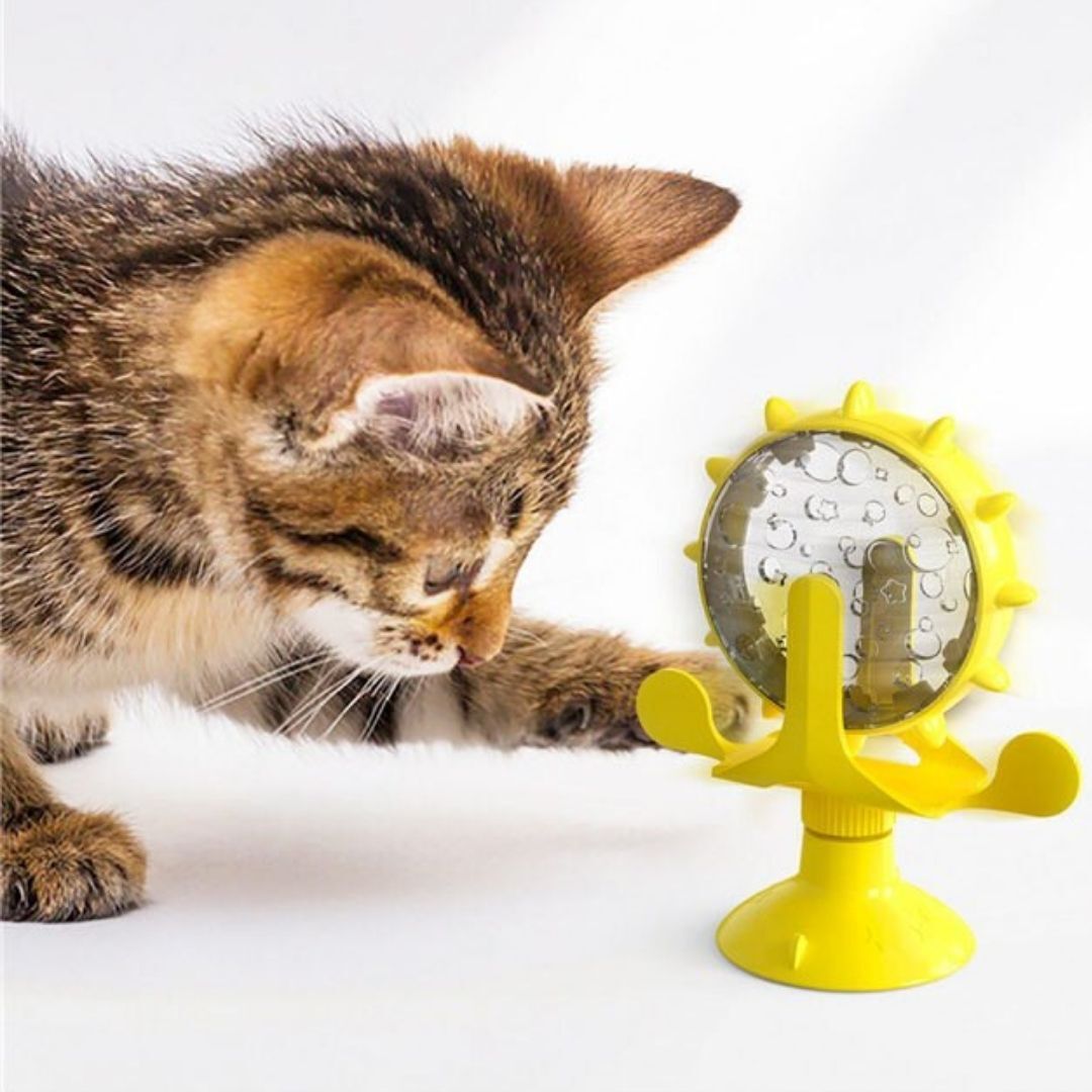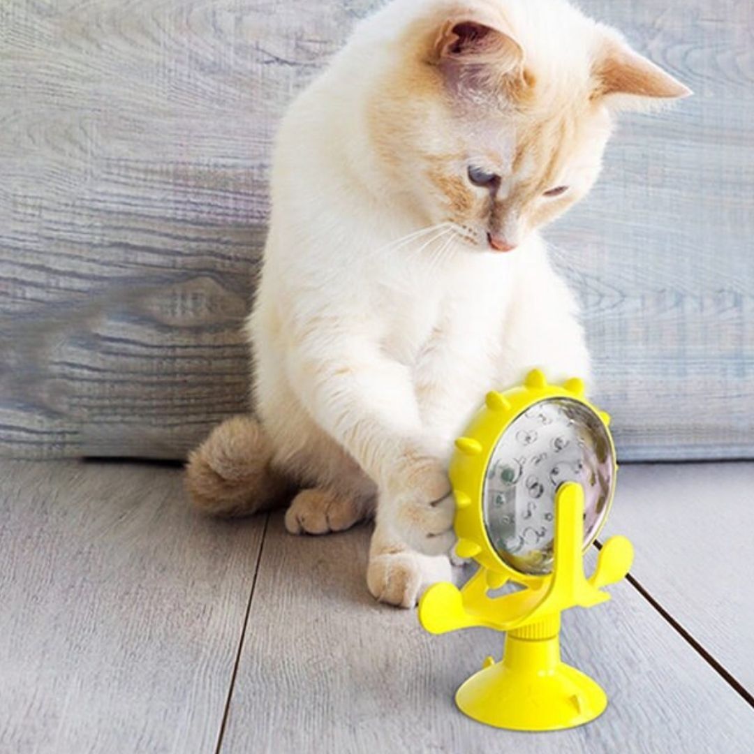 Игрушка для кошек интерактивная с присоской со светящимся шариком и мятой, желтый