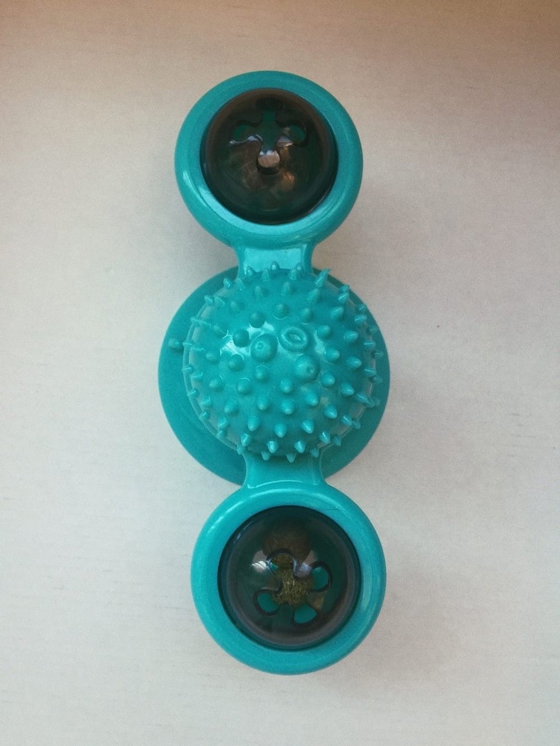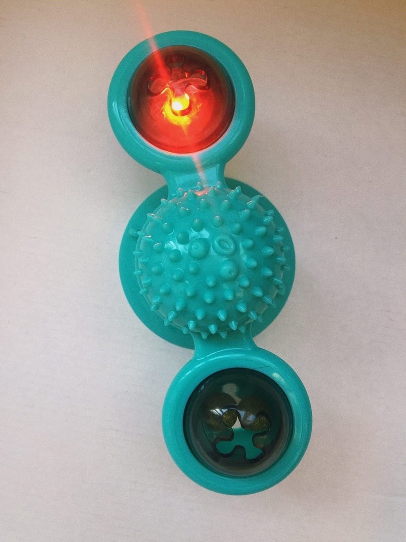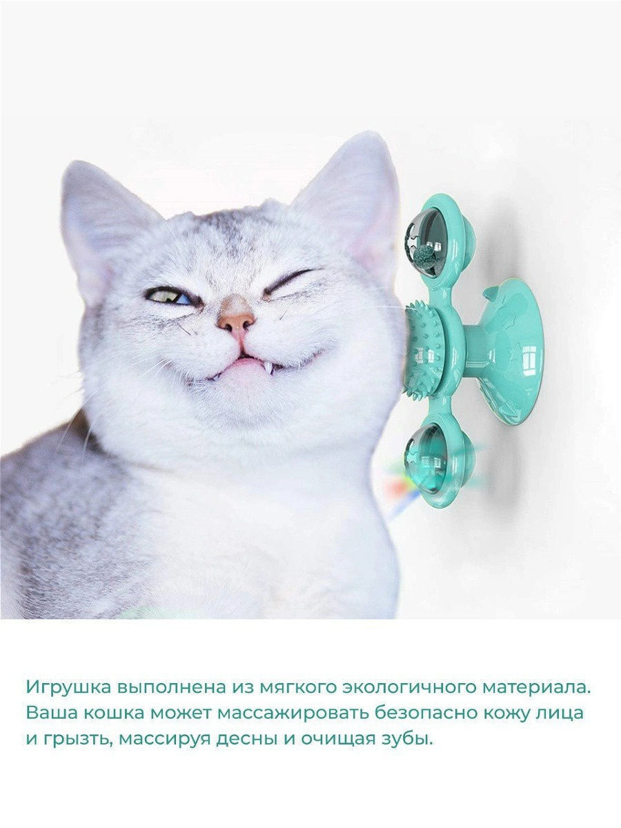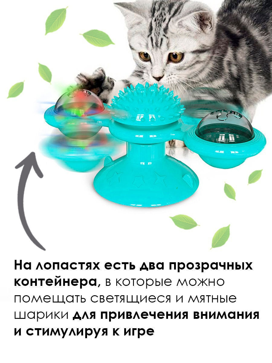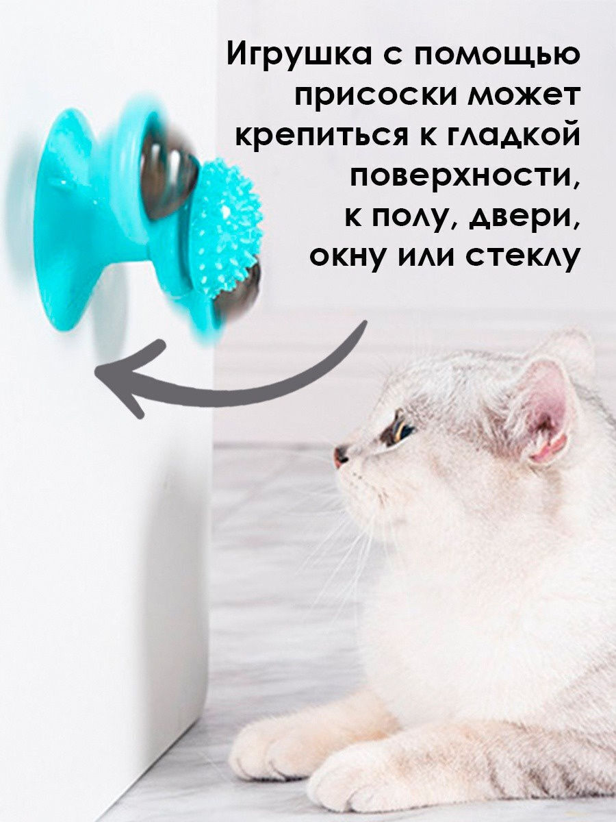 Игрушка для кошек интерактивная с присоской со светящимся шариком и мятой, бирюзовая