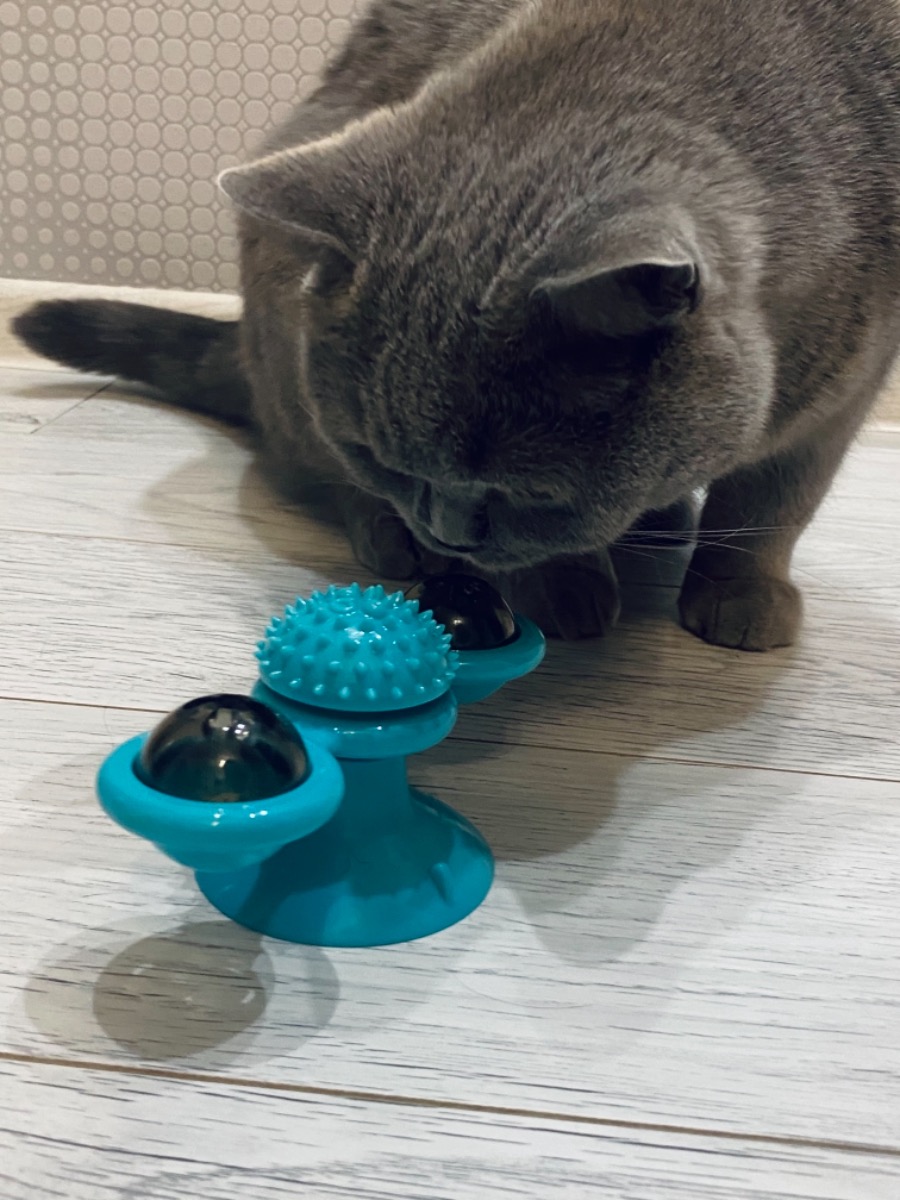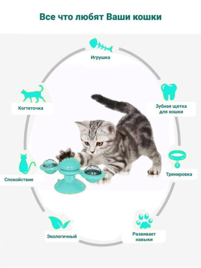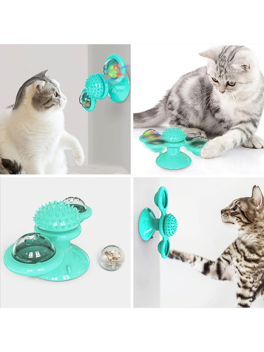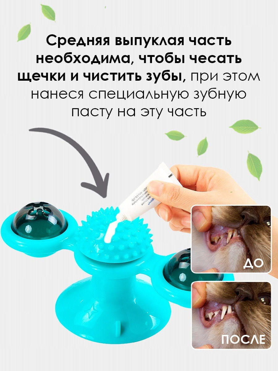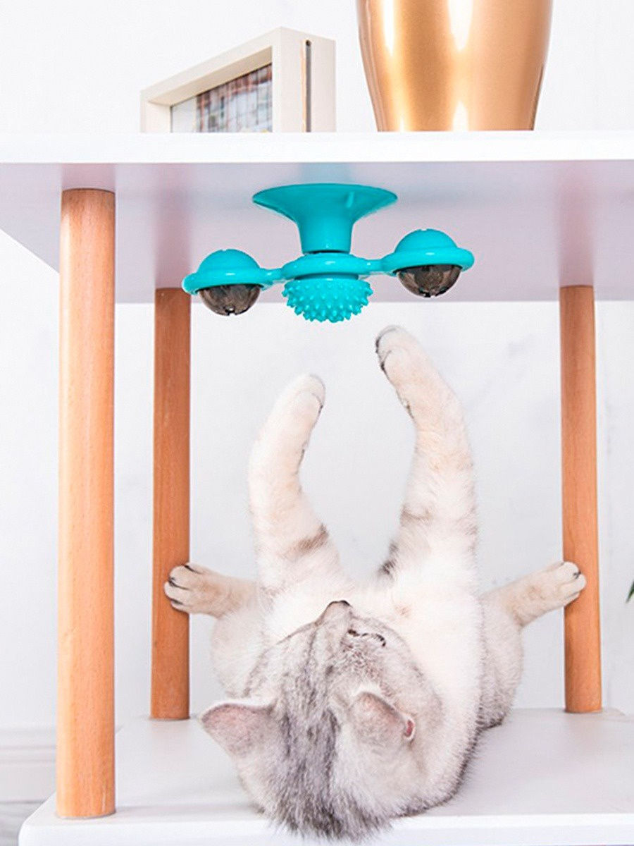 Игрушка для кошек интерактивная с присоской со светящимся шариком и мятой, бирюзовая