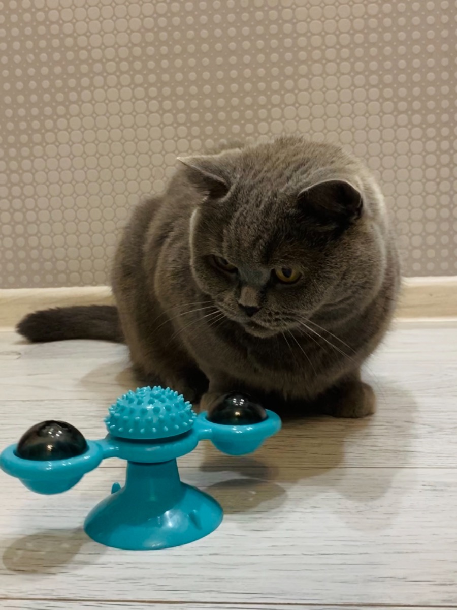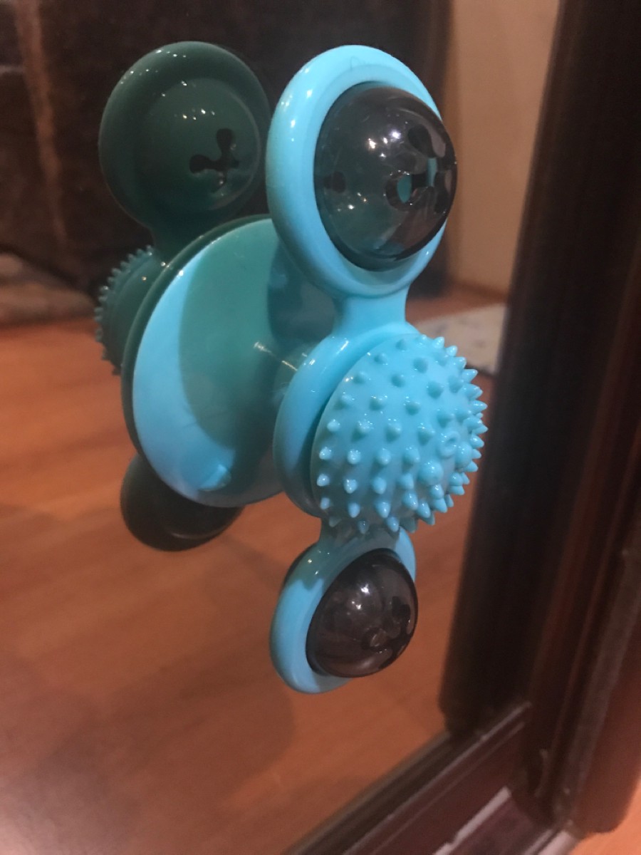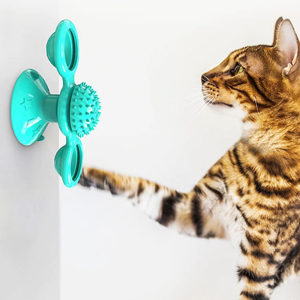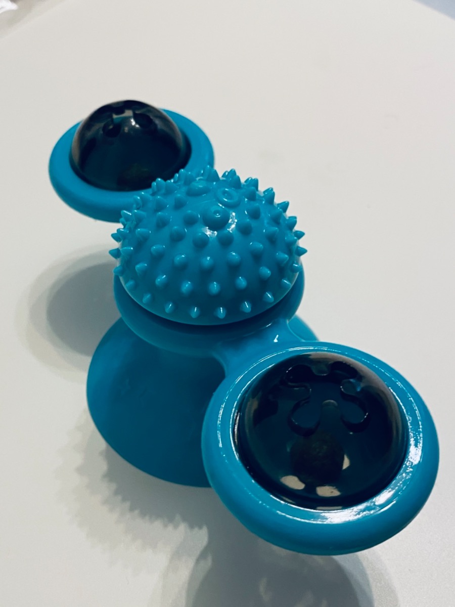 Игрушка для кошек интерактивная с присоской со светящимся шариком и мятой, бирюзовая