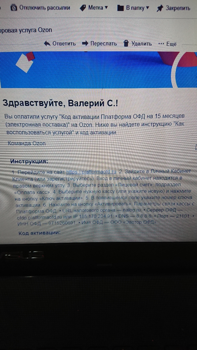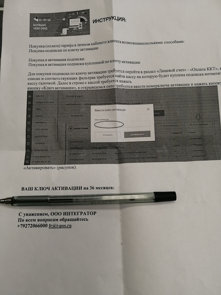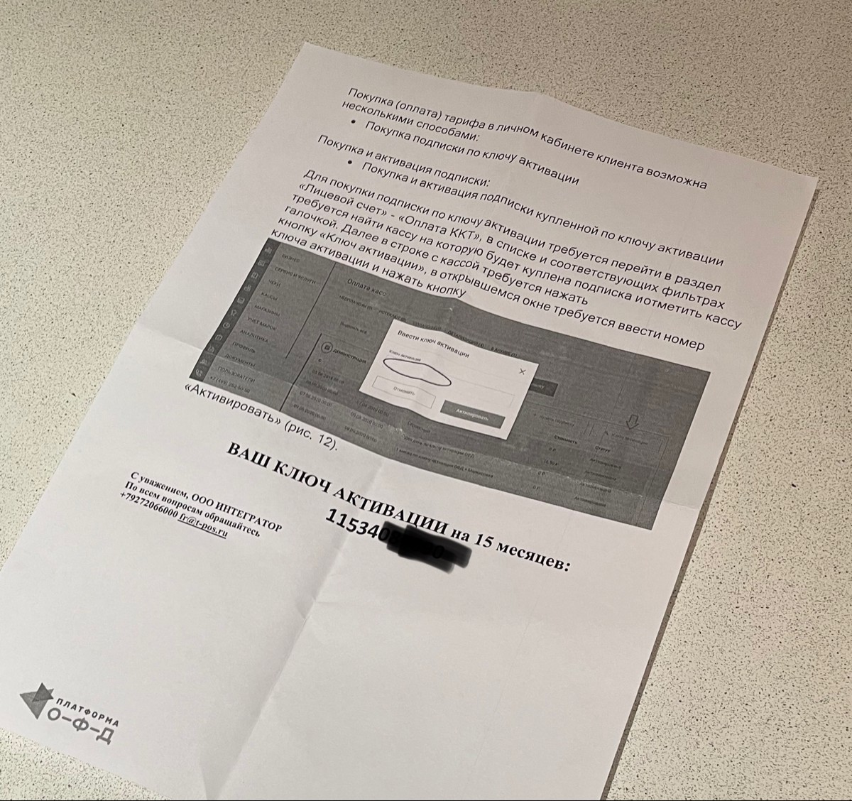 Код активации услуг Платформа ОФД (Эвотор) на 15 месяцев