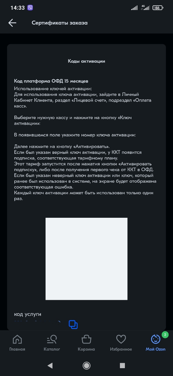 Код активации услуг Платформа ОФД (Эвотор) на 1 месяц