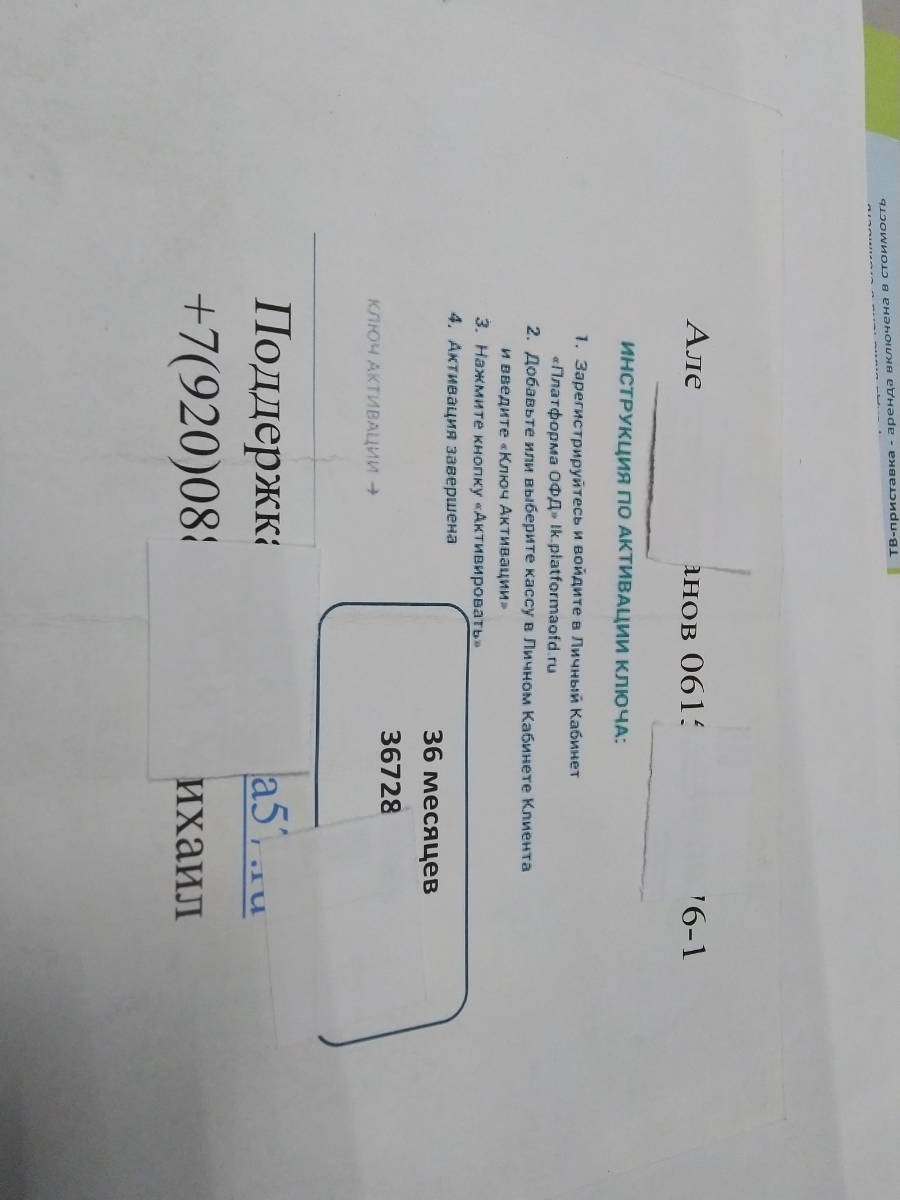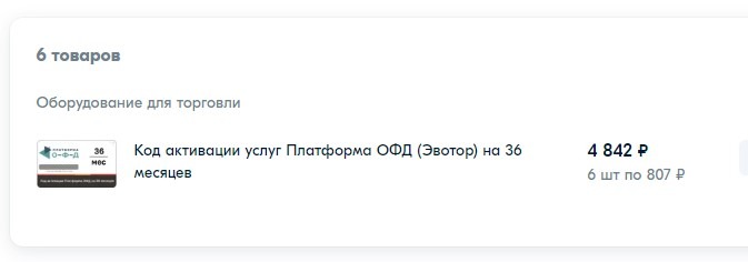 Код активации услуг Платформа ОФД (Эвотор) на 36 месяцев