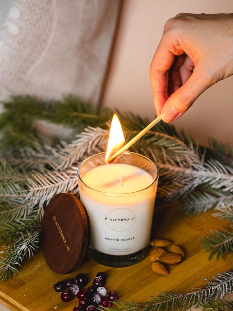 Свеча ароматическая PLATFORMA.48 "Зимний лес / Winter forest", 10 см х 7.5 см, 1 шт