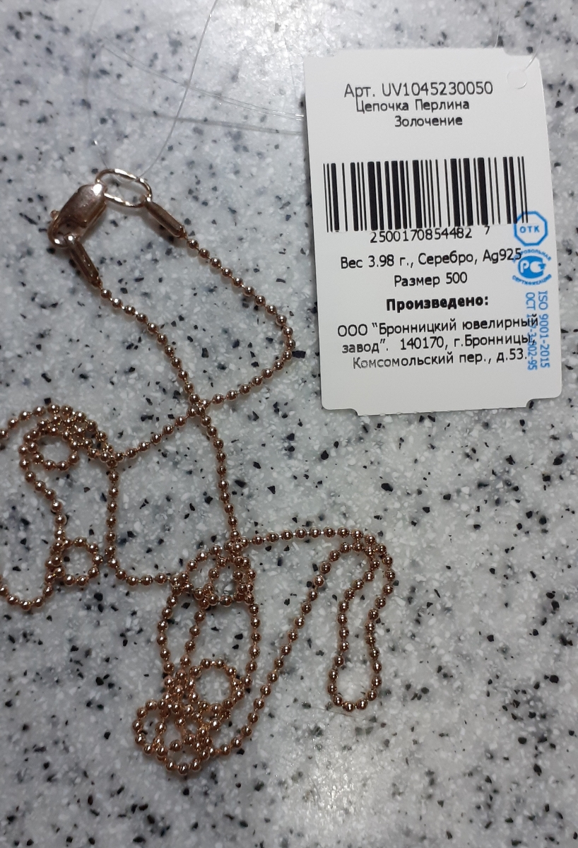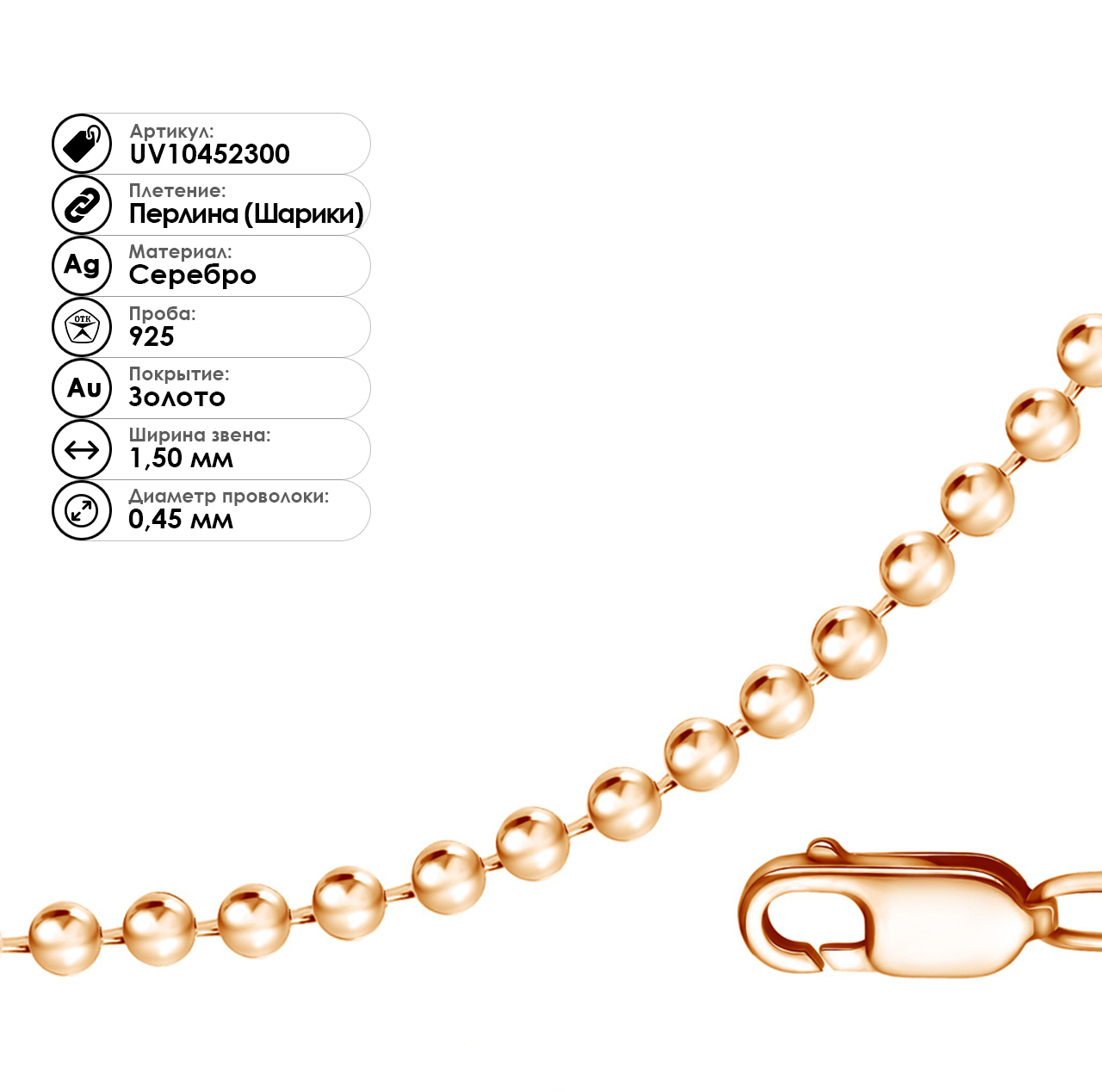 Pletnev Jewelry Цепочка "Перлина" серебряная позолоченная женская 925 пробы. Полновесная с алмазной огранкой.