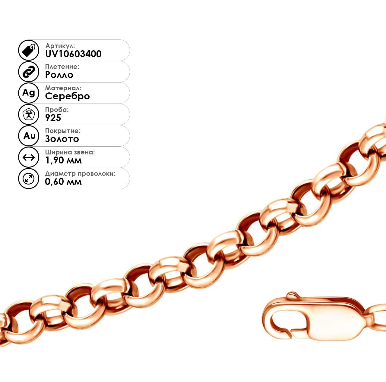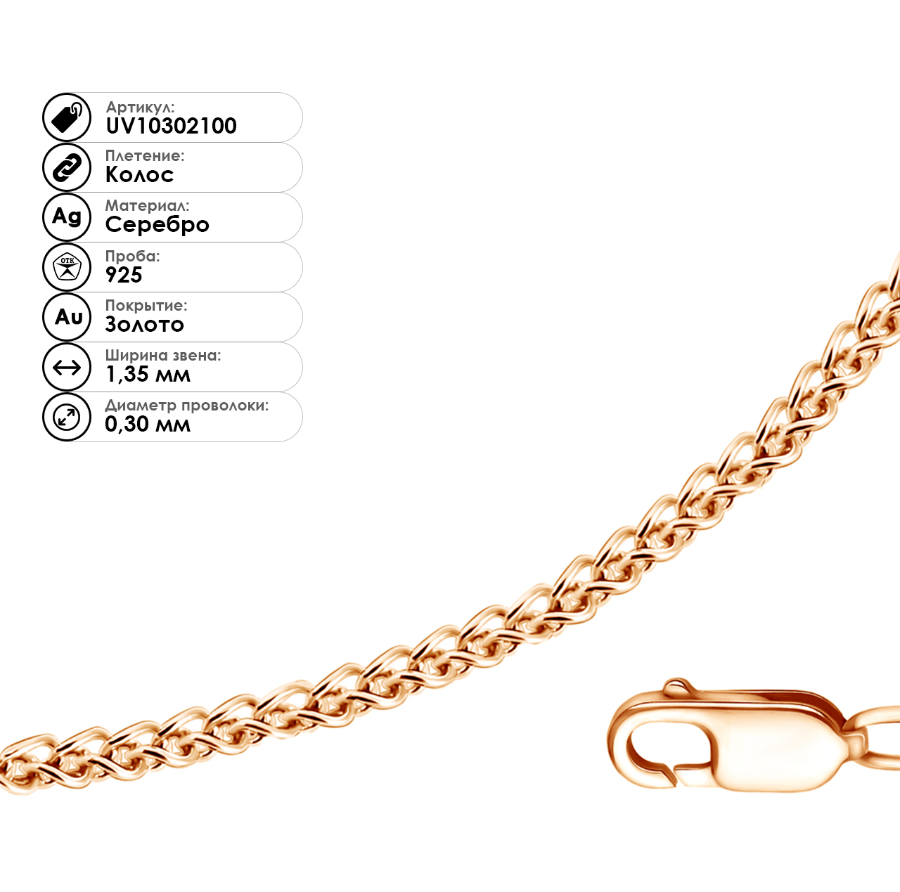 Pletnev Jewelry Цепочка "Ролло (Шопард)" серебряная позолоченная женская 925 пробы. Полновесная с алмазной огранкой.